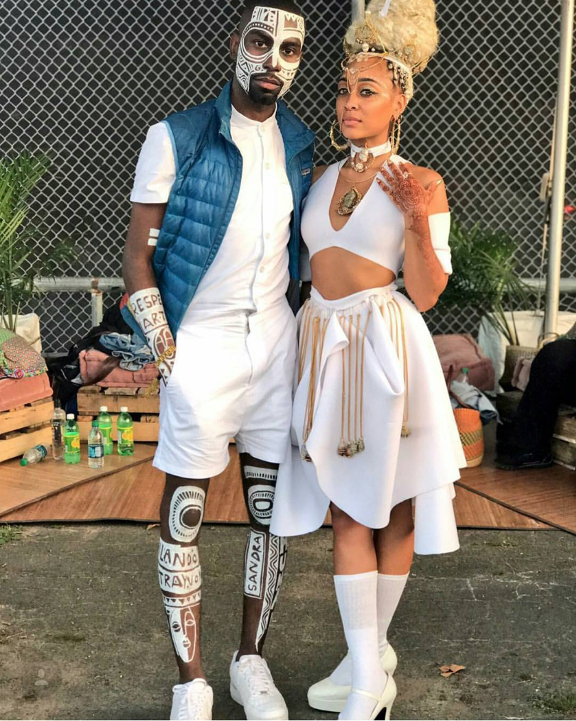 Black Lives Matter activist, DeRay Mckesson (@iamderay) and jewelry designer Reign (@reignglobal) posed showing off body art and excessive jewels done right in their all white ensembles.