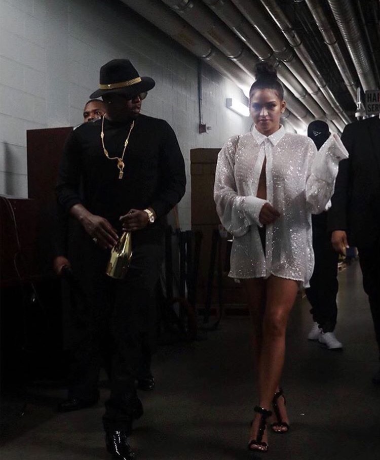 This power couple showed up to fight night for what was sure to be an epic date with Mayweather’s win. Diddy & Cassie have a way of making their presence known without saying too much with their indelible designer collection. The pair always make it a point to match each others fly. Notice how Diddy kept it sleek in an all black ensemble with a Ferragamo top and gold accessories while Cassie wore a shimmery top from Y/Project paired with black Azzedine Alaia sandals. Way to let your woman shine, Diddy!