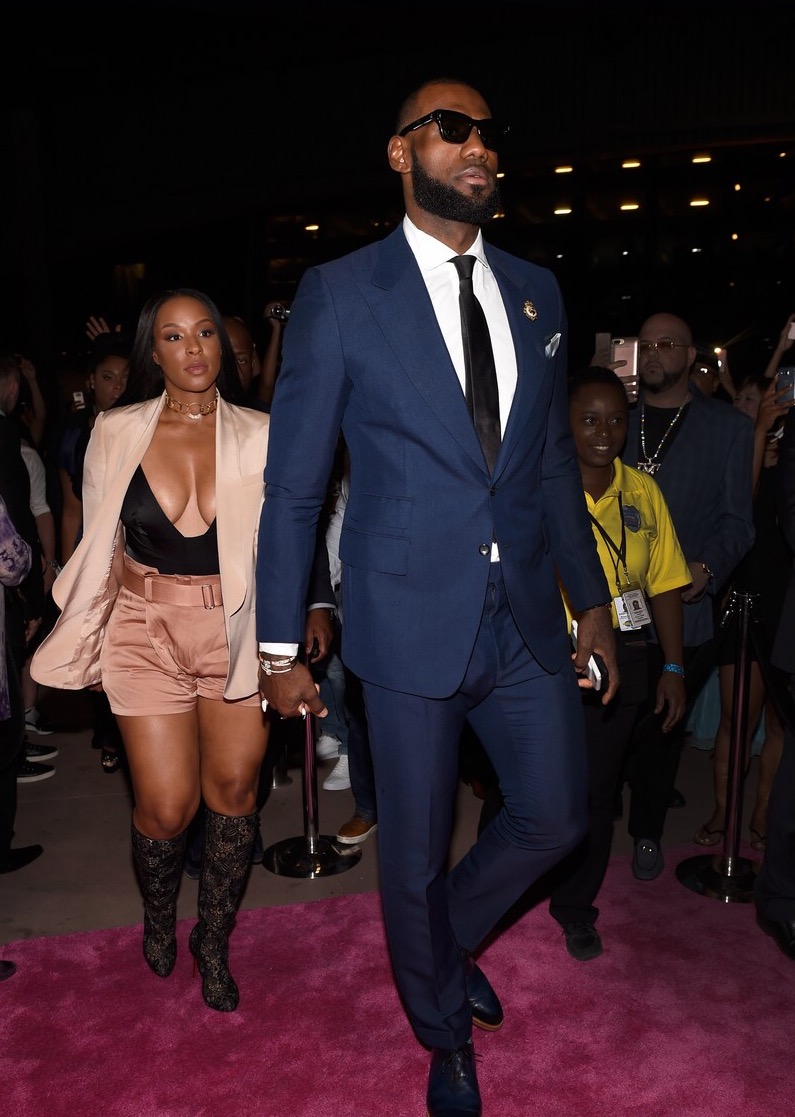 Lebron is notorious for killing it in a suit. King James’ statuesque frame in a well tailored suit is quite the vision. He too opted to make fight night a date night with wifey, Savannah, who looked gorgeous in satin shorts and a dope pair of lace boots, hand in hand with her man. No way anyone could miss them as the 6’8 giant waltzed by suited up in a crisp Tom Ford suit. If you know anything about Tom Ford, his suits are impeccably made. Great choice!