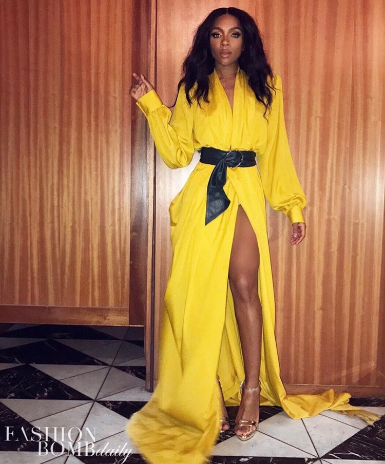 This makes the second consecutive week that Niatia has made the list in Michael Costello, so that right there should tell you something! The pair are obviously a match made in heaven. Michael is notorious for billowy silhouettes that play on all body types, whether curvy or slim, his collections have something for everyone. Niatia looks breathtaking in this bold, sultry gown. Contrary to her big tresses last week, she went with a loose messy style for this look which I love!