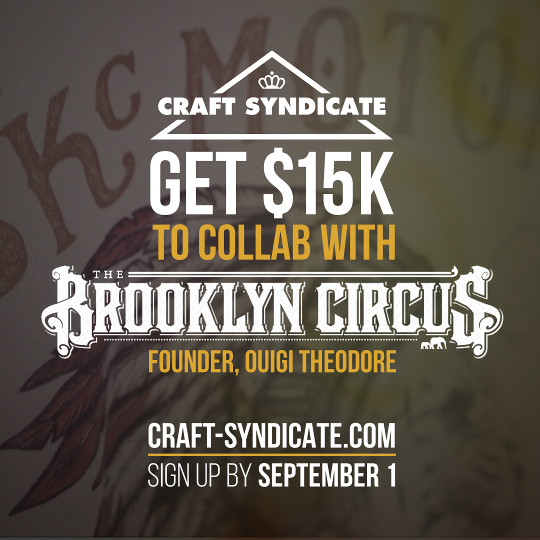 Craft Syndicate pairs up-and-coming creatives in music, fashion, art/design and film with established entrepreneurs for the purpose of collaborating on new projects together. This year, a lucky aspiring designer will be win a $15,000 grant and work with Ouigi Theodore of the BK Circus to create a new line!