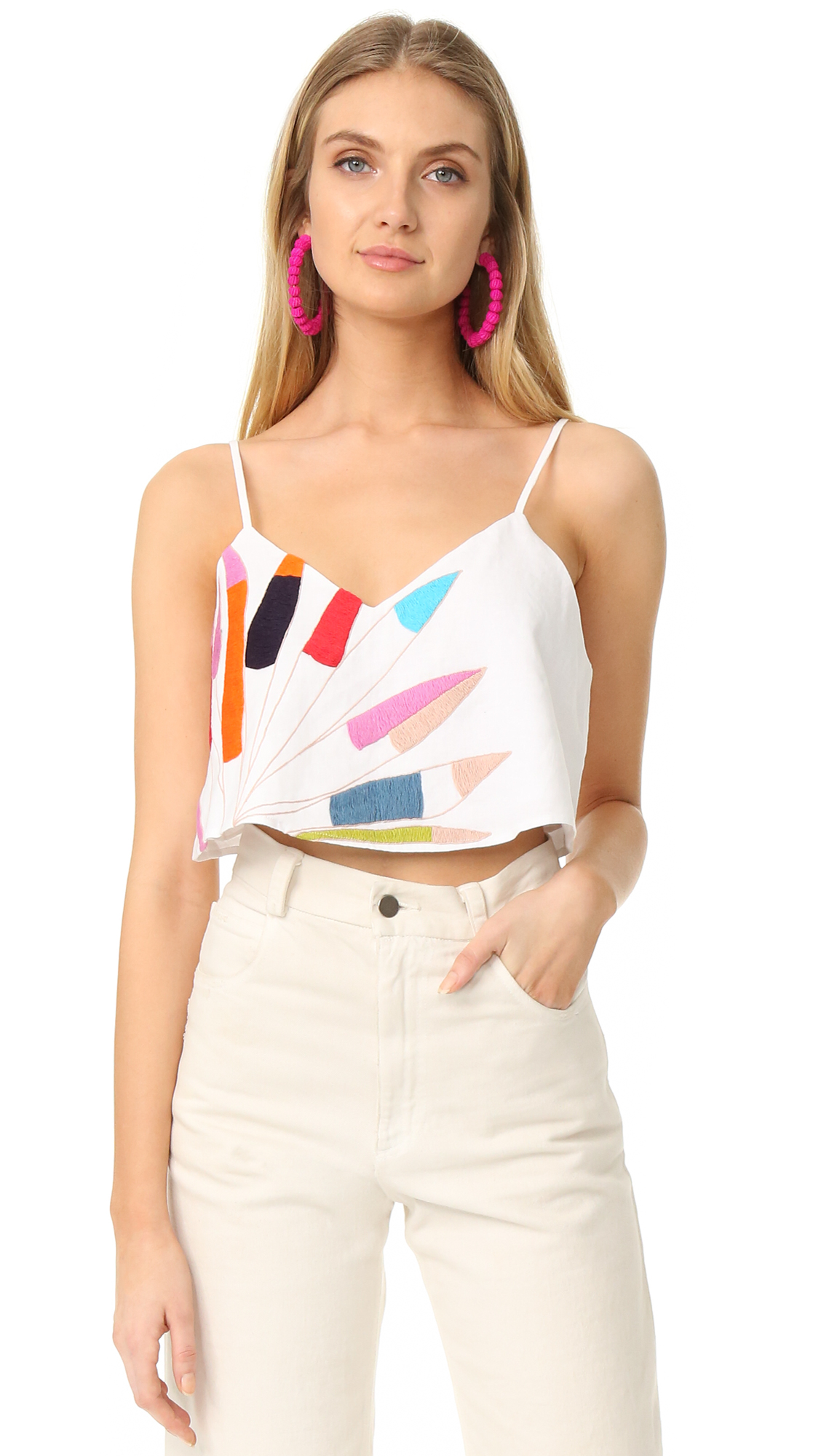 Vibrant embroidery adds a bright splash of color to this cropped Mara Hoffman camisole.