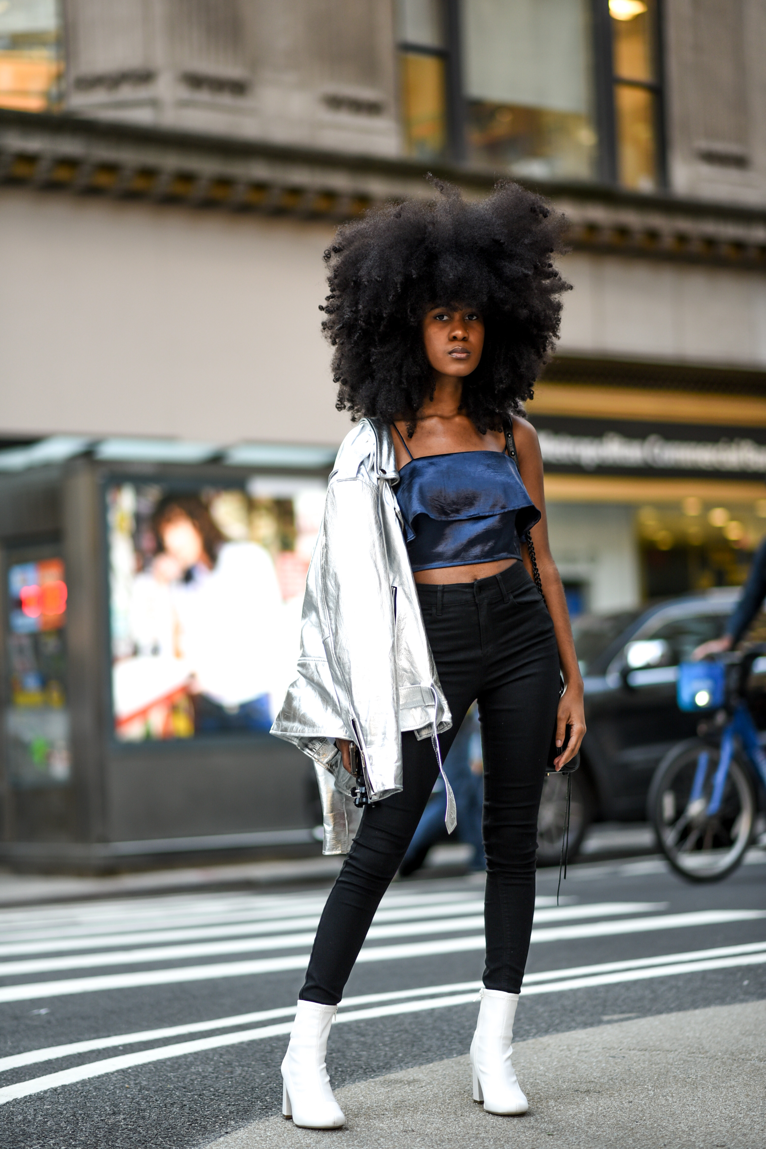 Hello natural! This beauty, @youhadmeatbacon stopped traffic with her overflowing ‘fro and not to mention her metallic jacket.