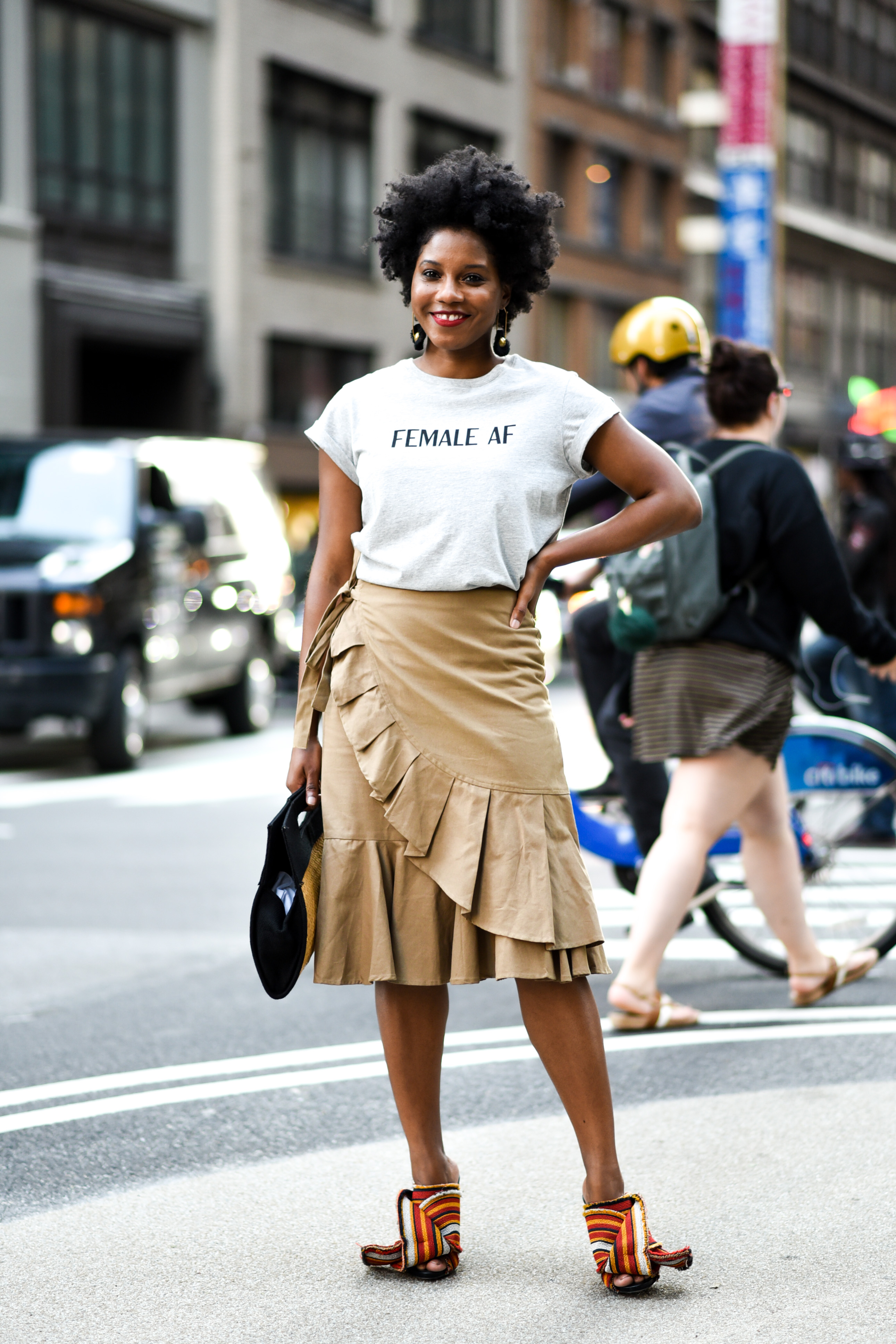Female AF! @Monroesteele walked the streets of New York with the coolest mules to dress up her look.