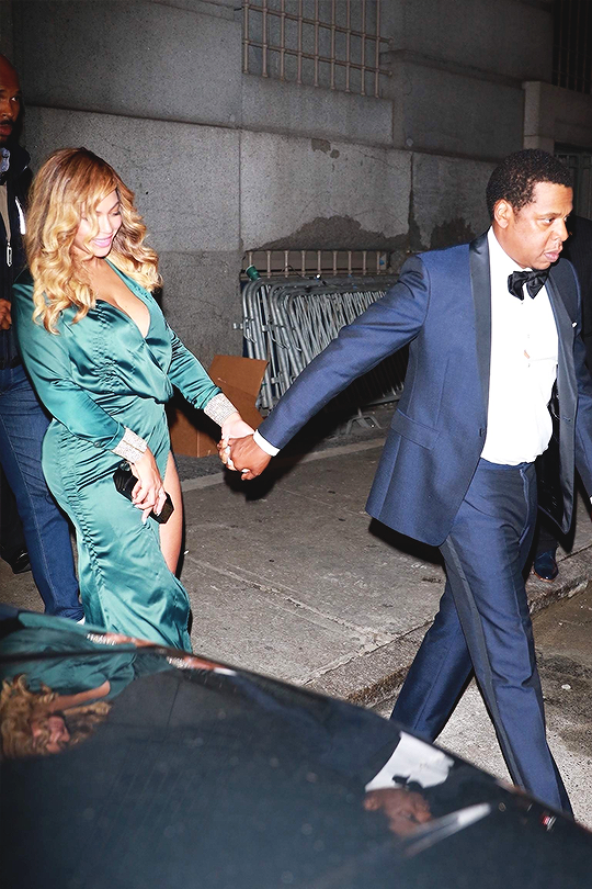 She added doses of glamour with Lorraine Schwartz jewelry and $795 Giuseppe Zanotti platform sandals. Jay Z looked dapper himself in a Burberry tux.
