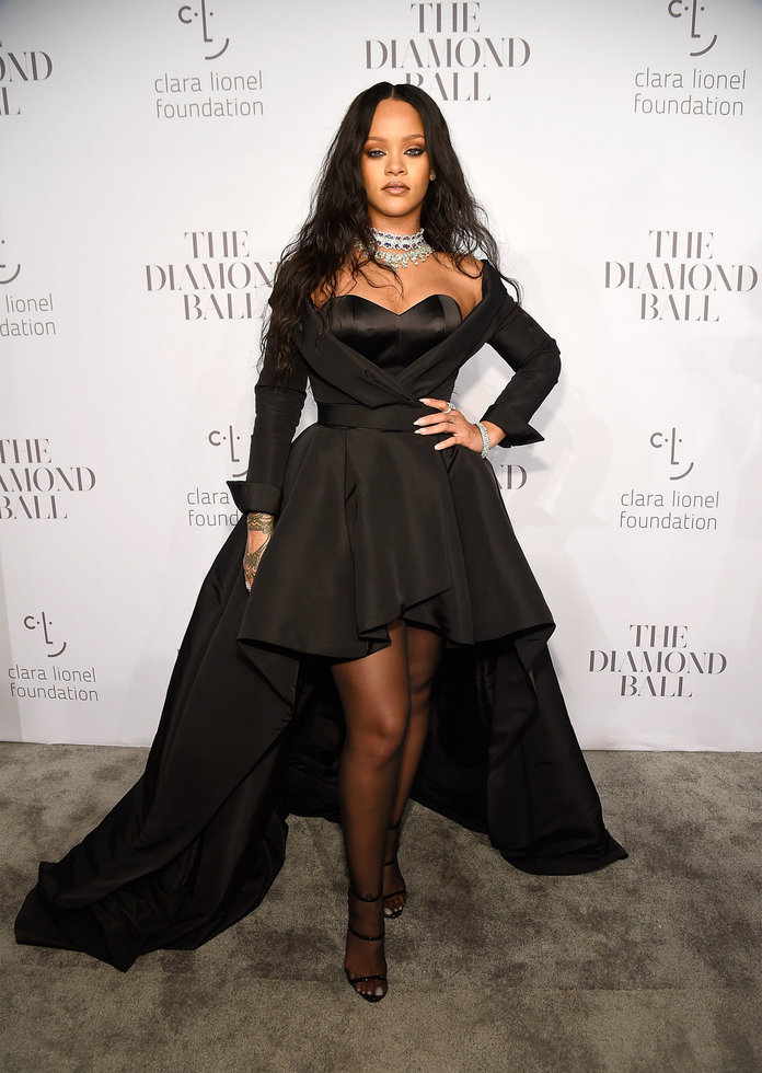 As the guest of honor for her 3rd annual Diamond Ball, Rihanna was a stunner in an all black Ralph and Russo high/low gown showcasing her gorgeous legs. Always one to make a statement, Riri went with dark bold makeup so not to soften her look, and give it more umph! Can you imagine her statuesque frame as she sashayed in the room commanding the train of the gown as it followed suit? This was a great take on the classic all black.