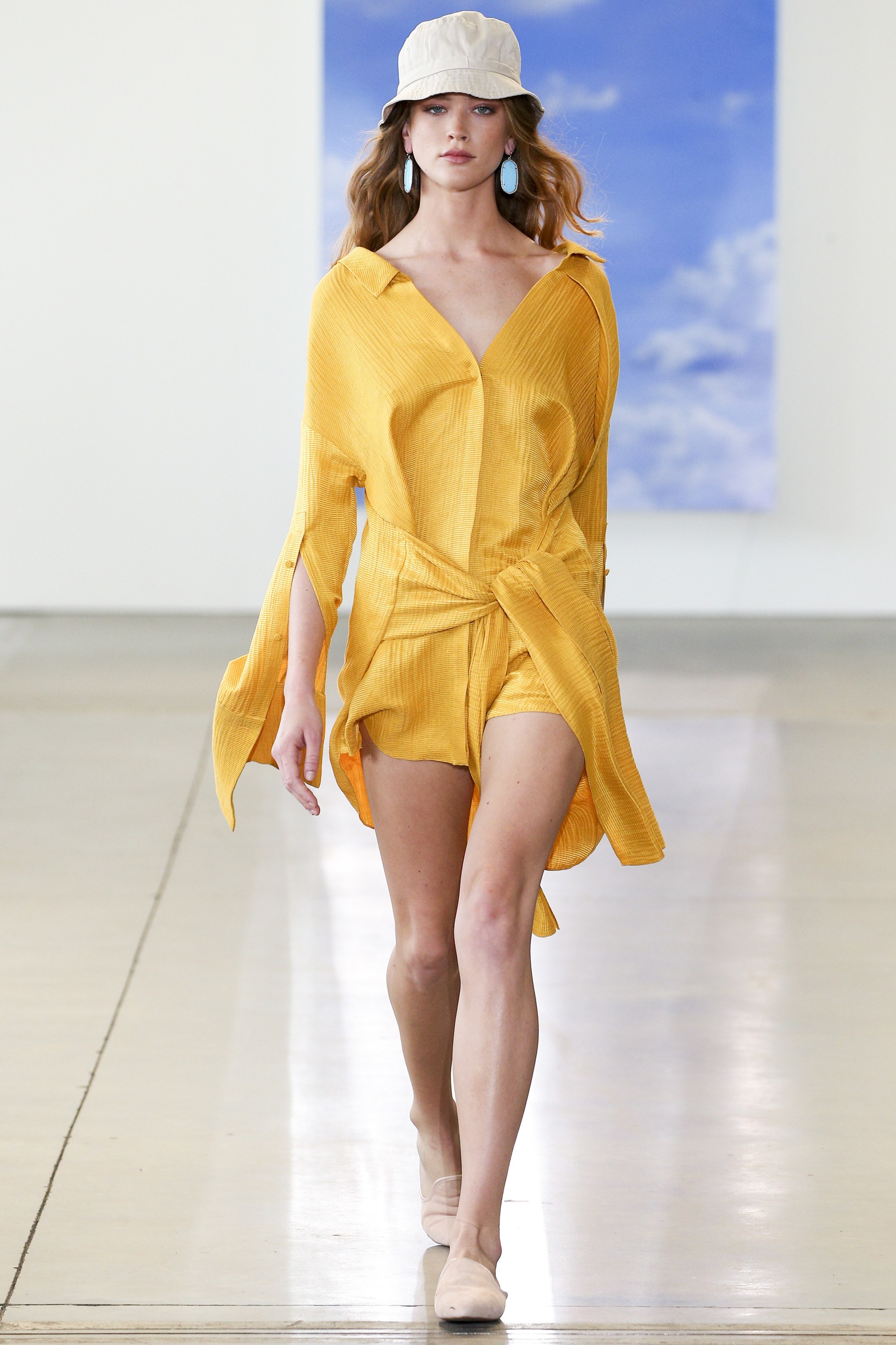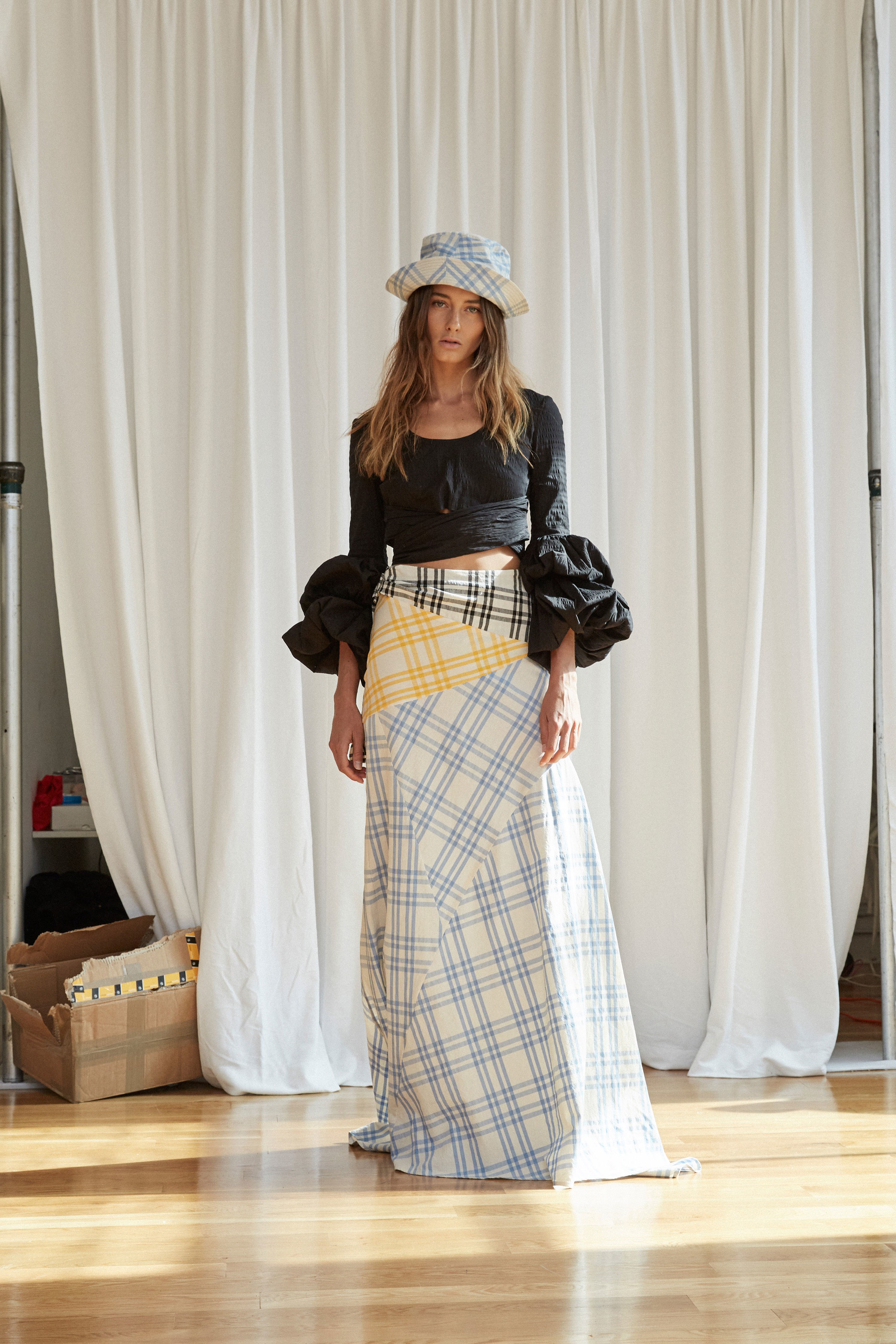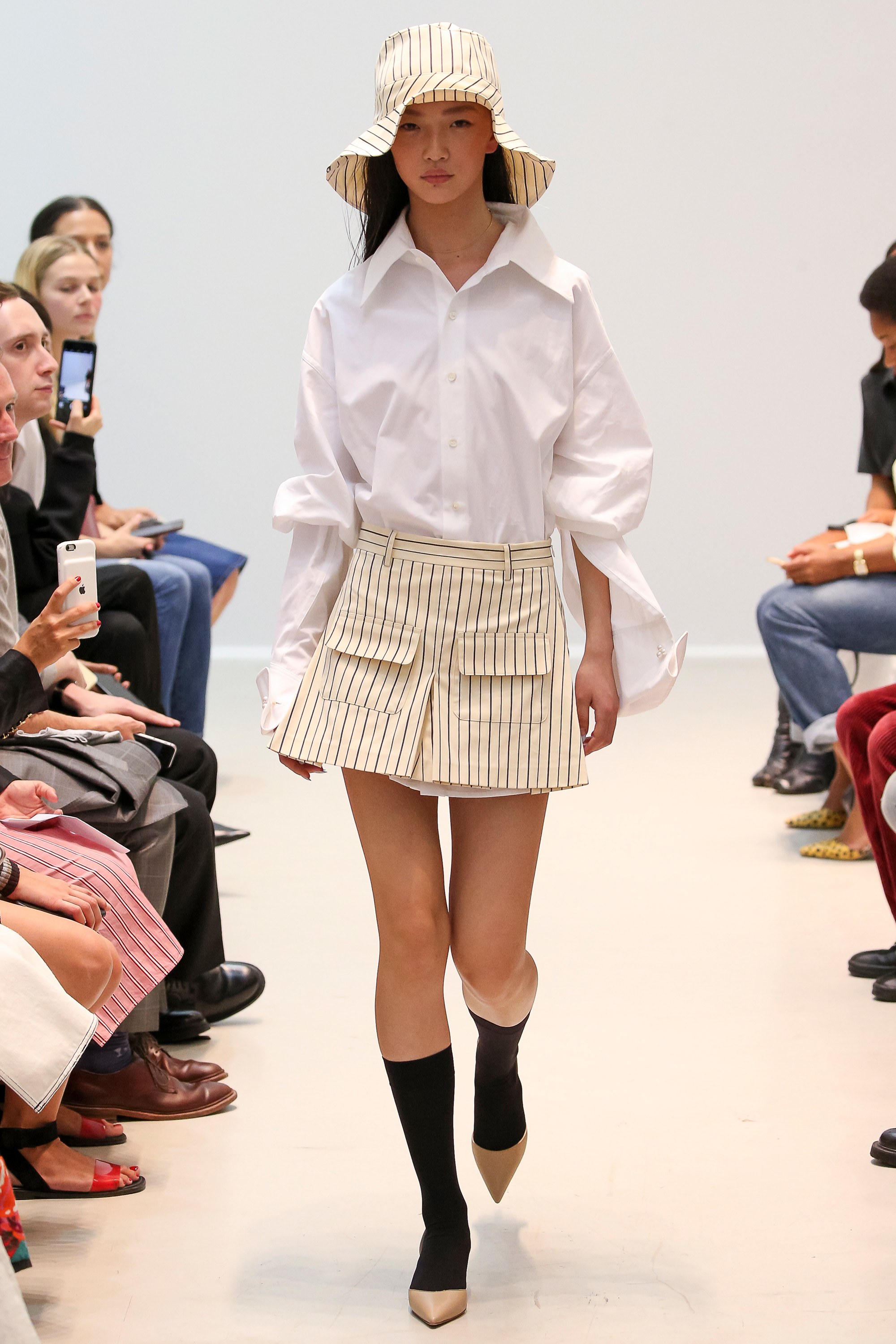 Fenty favorite Matthew Adams Dolan showed them with floppy brims in solids and stripes—paired with oversized, button-front shirts and cargo mini skirts.
