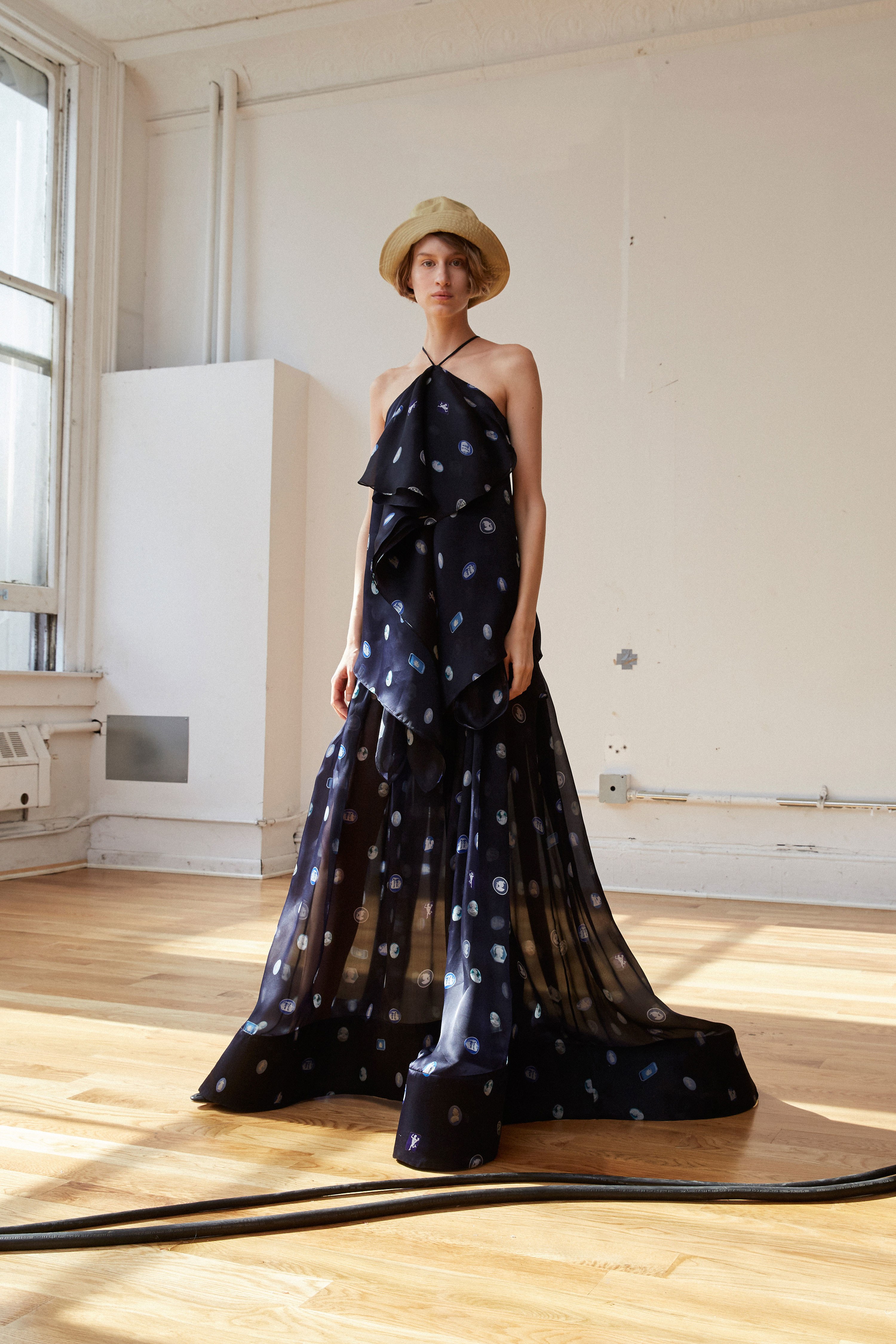 Rosie Assoulin accented red carpet-ready gowns, party-worthy crop tops, and dramatic, floor-grazing skirts with the timeless hat.