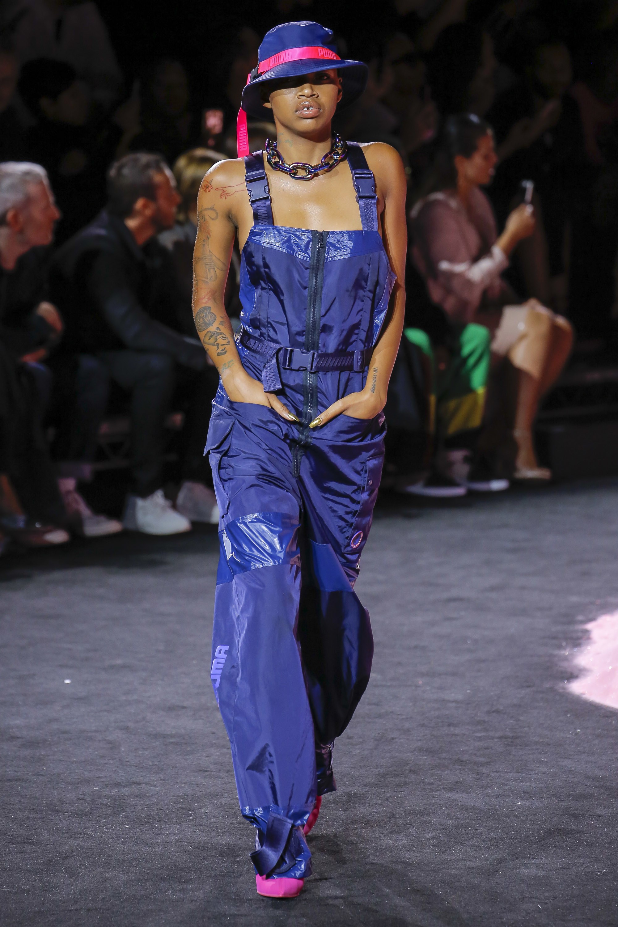 Rihanna showed them on both men and women with neon PUMA logo ribbons for FENTY x PUMA.