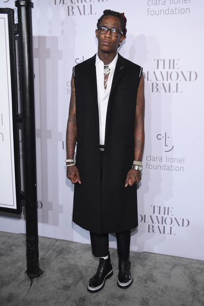Thugga, where you been? Young Thug kept it classic in a white and black Dior Homme look showing off his tatted up arms.