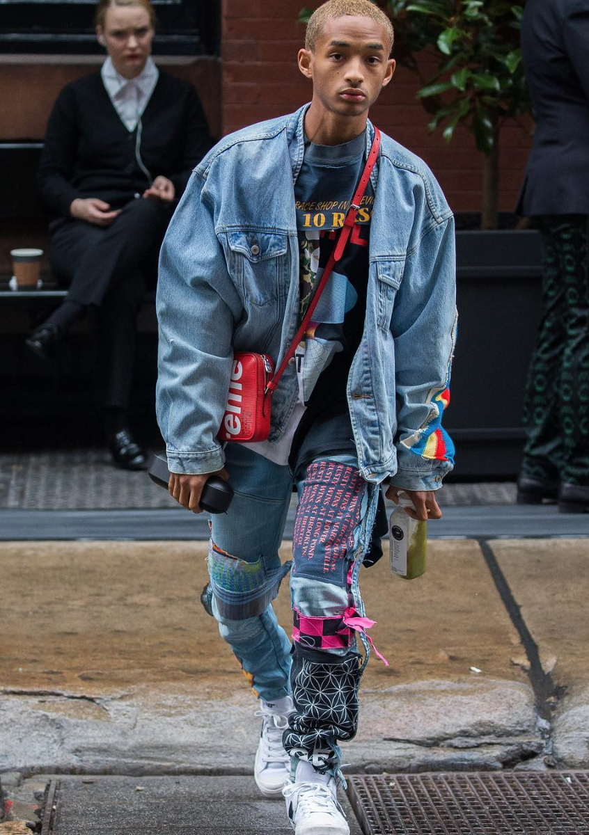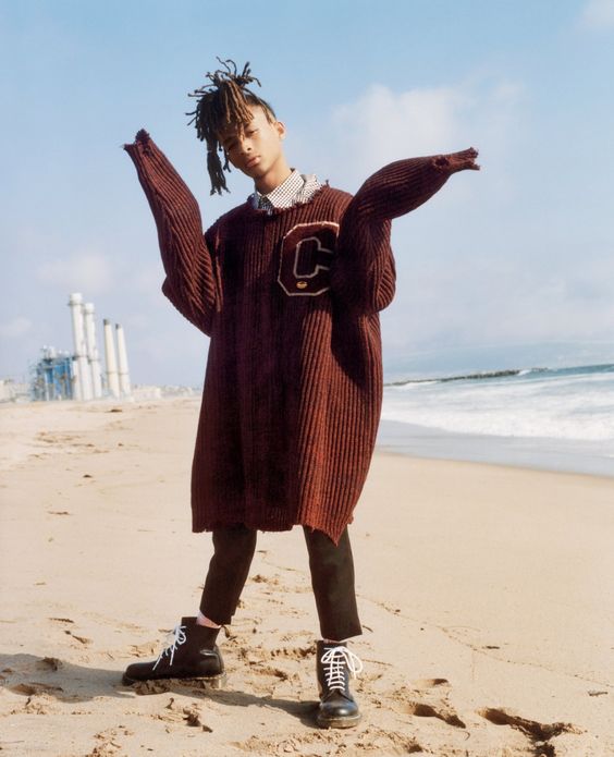 This young entrepreneur is steadily killin’ the fashion scene. He enjoys layering his looks, oversized apparel, prints, knitted clothing, and wearing mix-matched shoes. In an aesthetic described as streetwear mixed with skater gear, no one can touch Jaden’s sartorial swagger.
