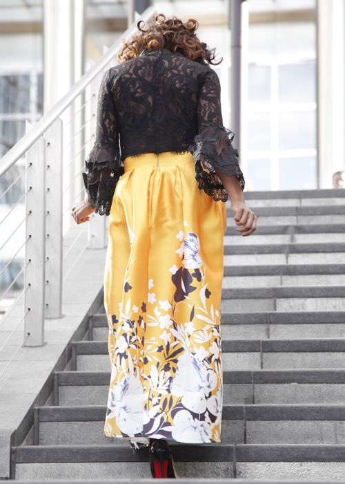 Rock this this beauty with a sleek pump and a chic fitting crop top for a similar look!