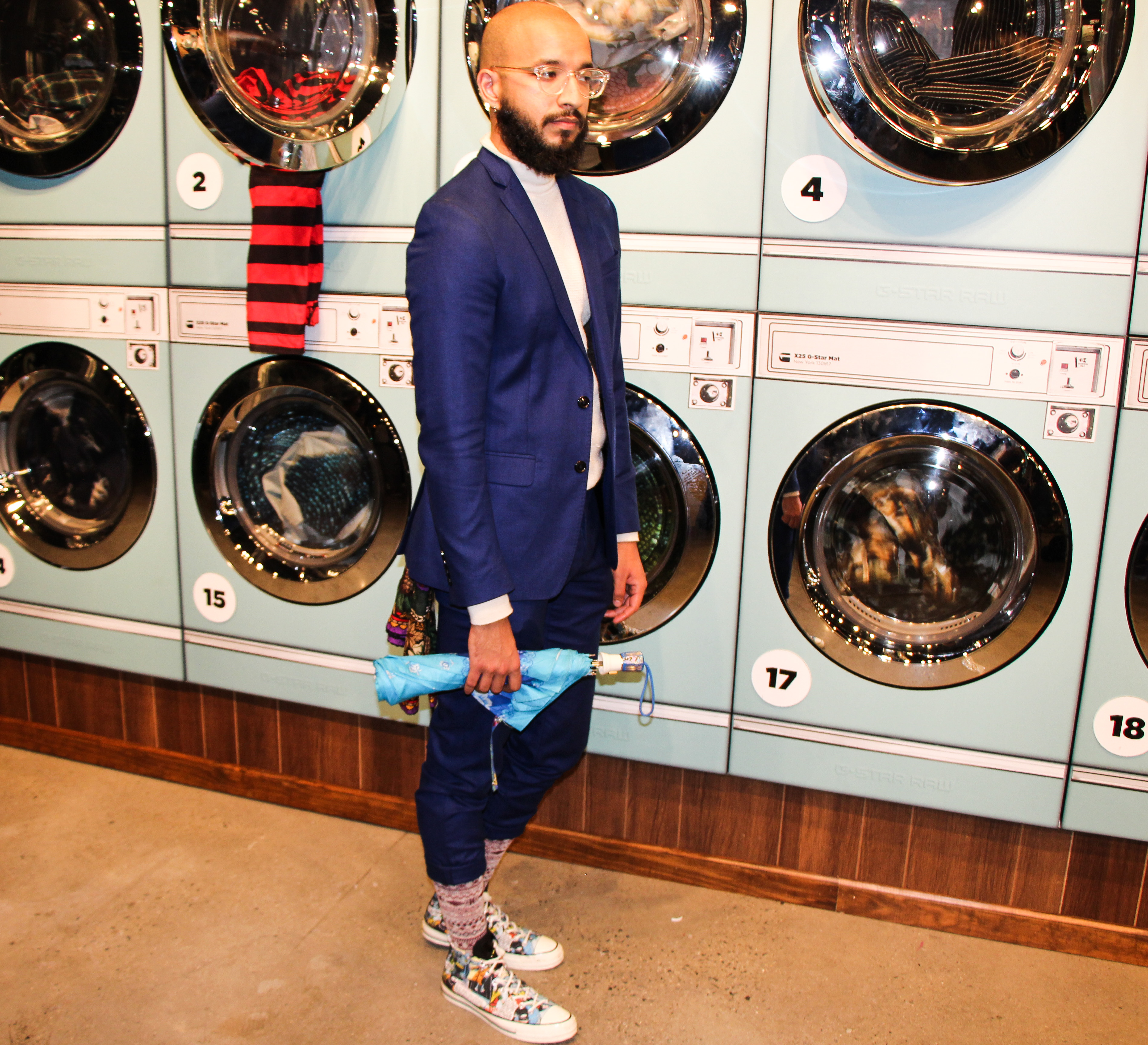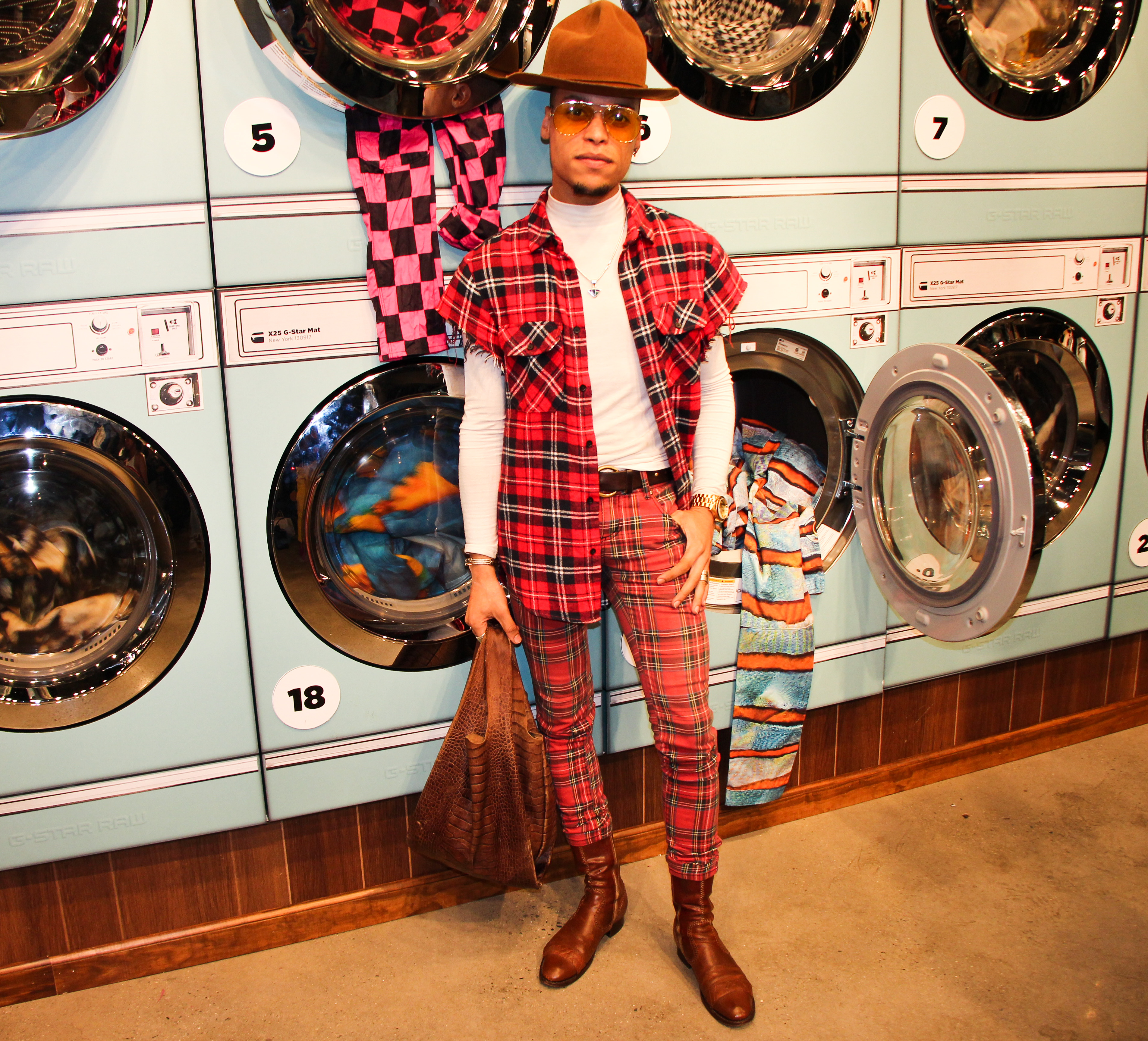 The space was decked out in a laundr0mat inspired theme, which gave aspiring artists, models, designers, and up-and-comers a glimpse into the G-Star lifestyle. The 25 new styles weren’t being washed, but the layout gave off that illusion, as you’d see prints of denim in washing machines, on clothespins, in laundry baskets, and more.