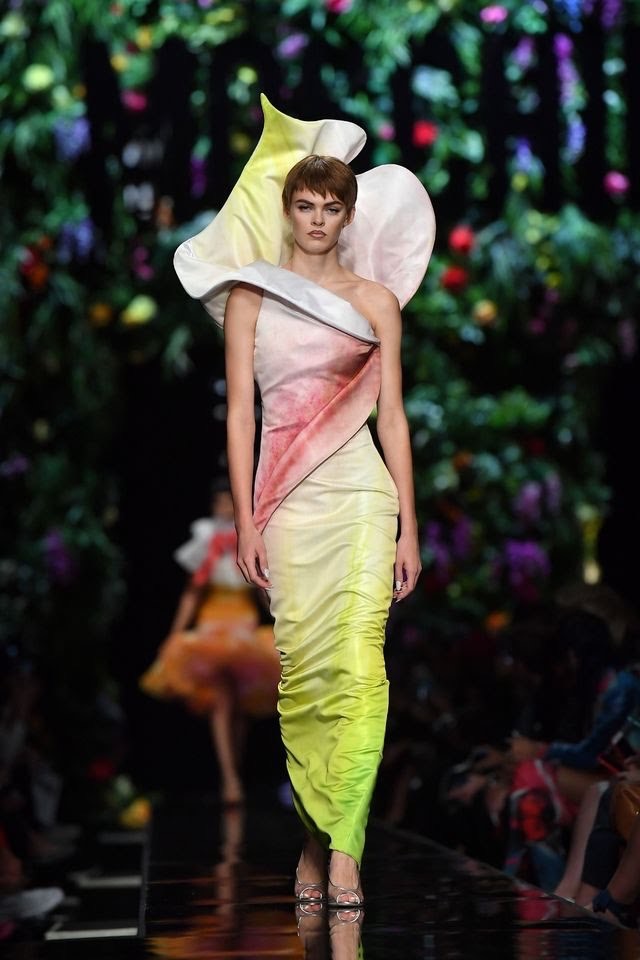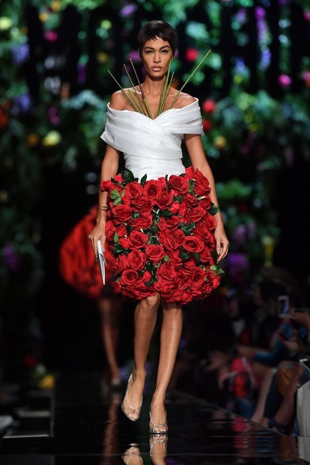 But the party did not stop there! The show took a blossoming turn as Anna Cleveland led in wearing a life size tulip dress. A few looks later a flourishing skirt of red roses made a dashing appearance. However the closing finale was the peak of the night with sprouting bouquet dresses that floored his audience to no end.
