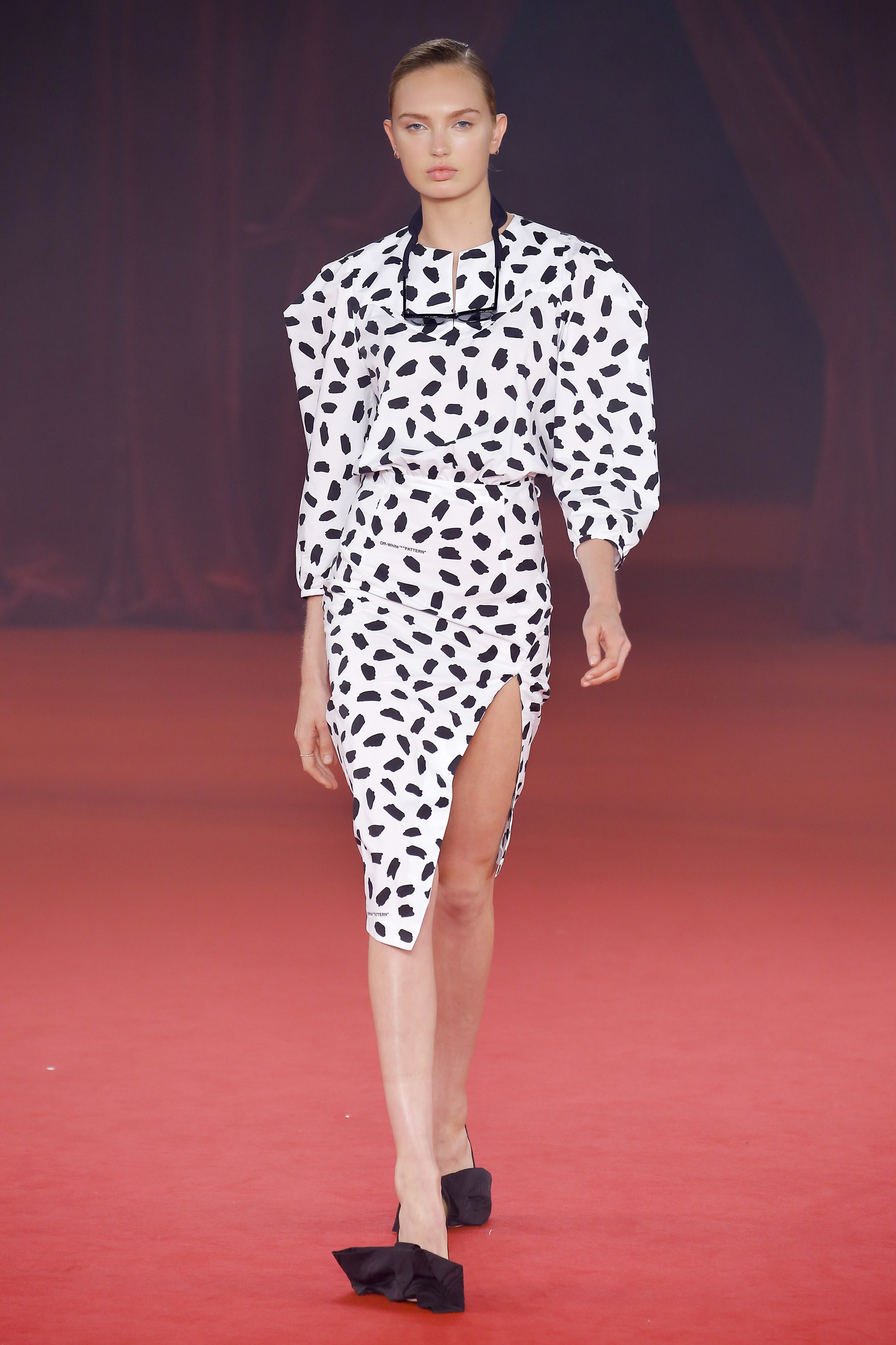 Some of the prints used reflected from classic cartoon shows. The black-and-white splattered print reminded me of the Flintstones characters, Pebbles and Bamm-Bamm. Also, the black-and-white printed and cropped tie front style is prevalent in 2017, but Abloh has proven that the trend will continue even next year.