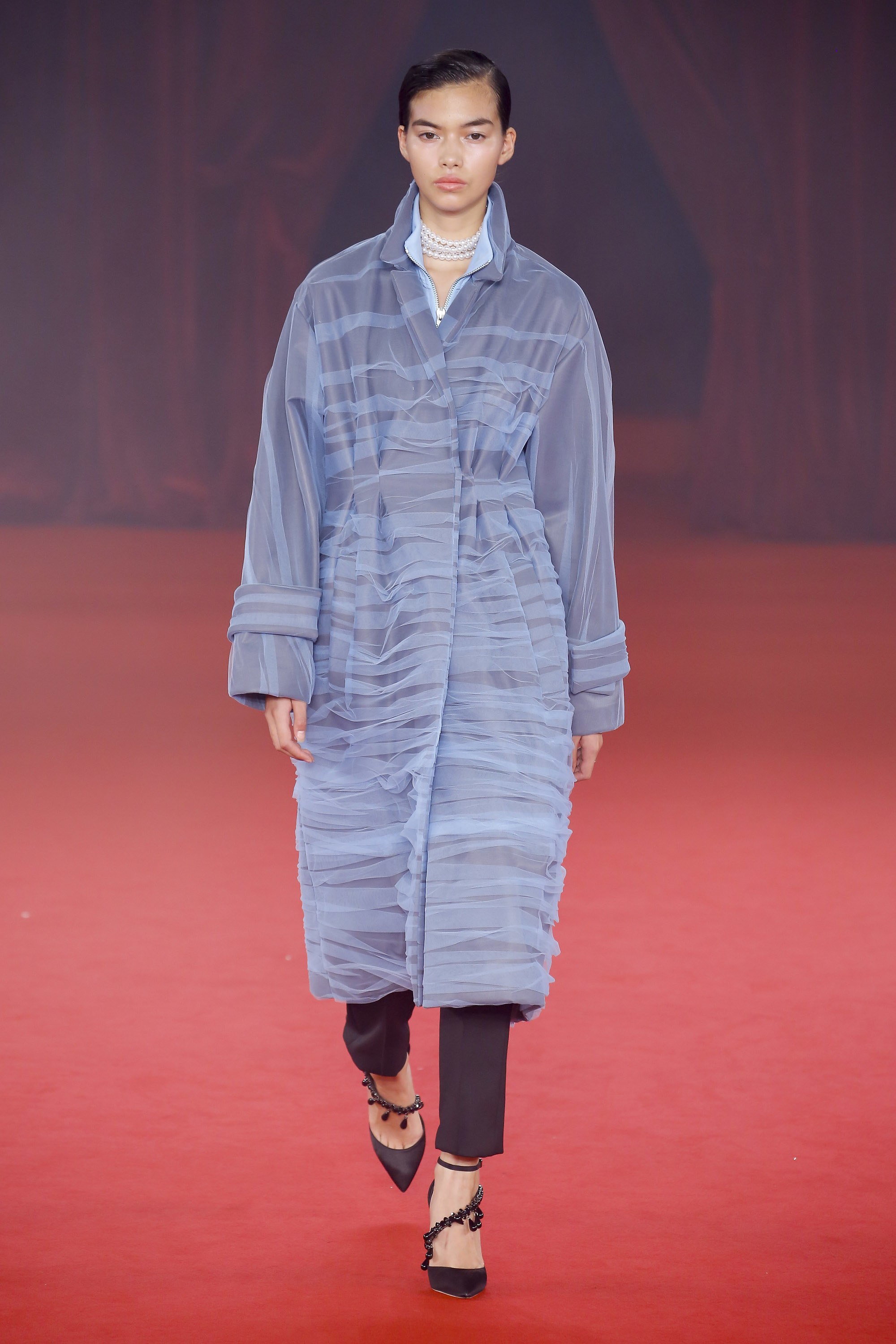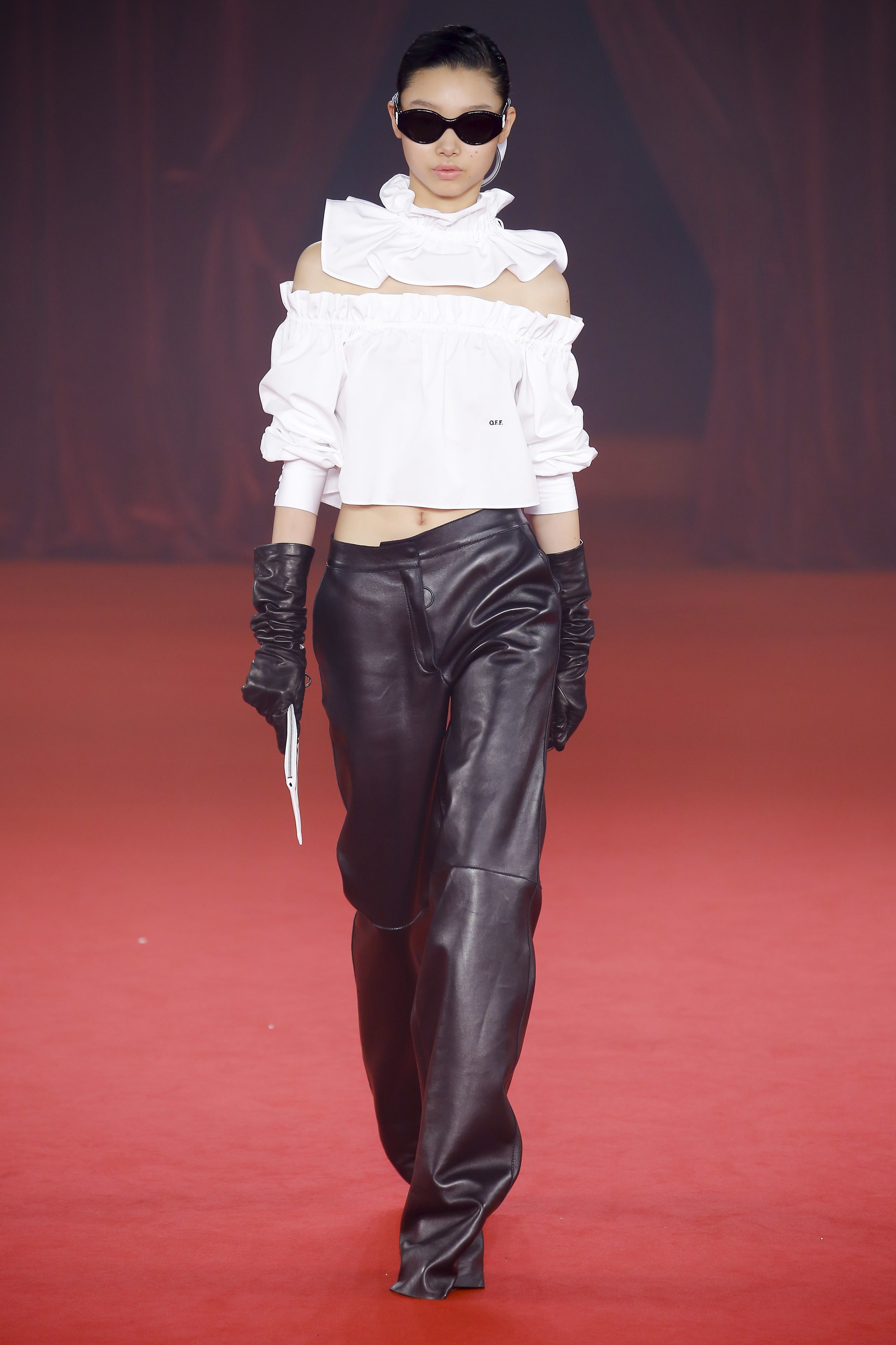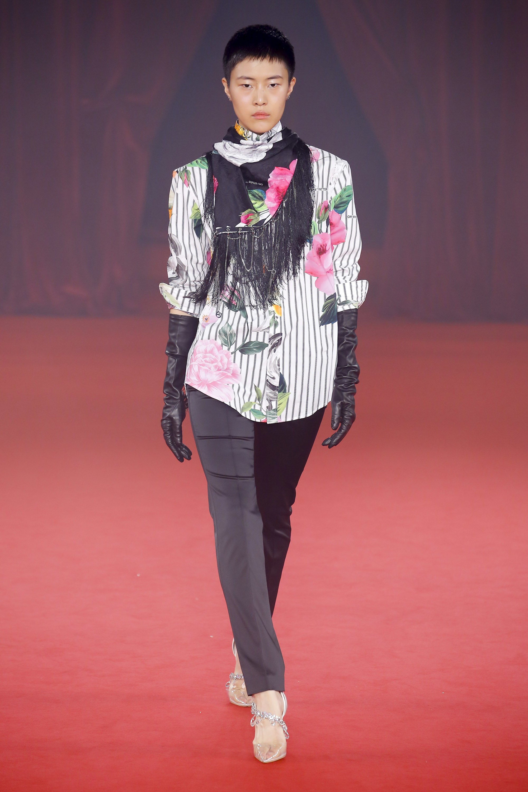 Abloh added ruffles and cropped outerwear pieces, which have been noticed throughout his previous collections.