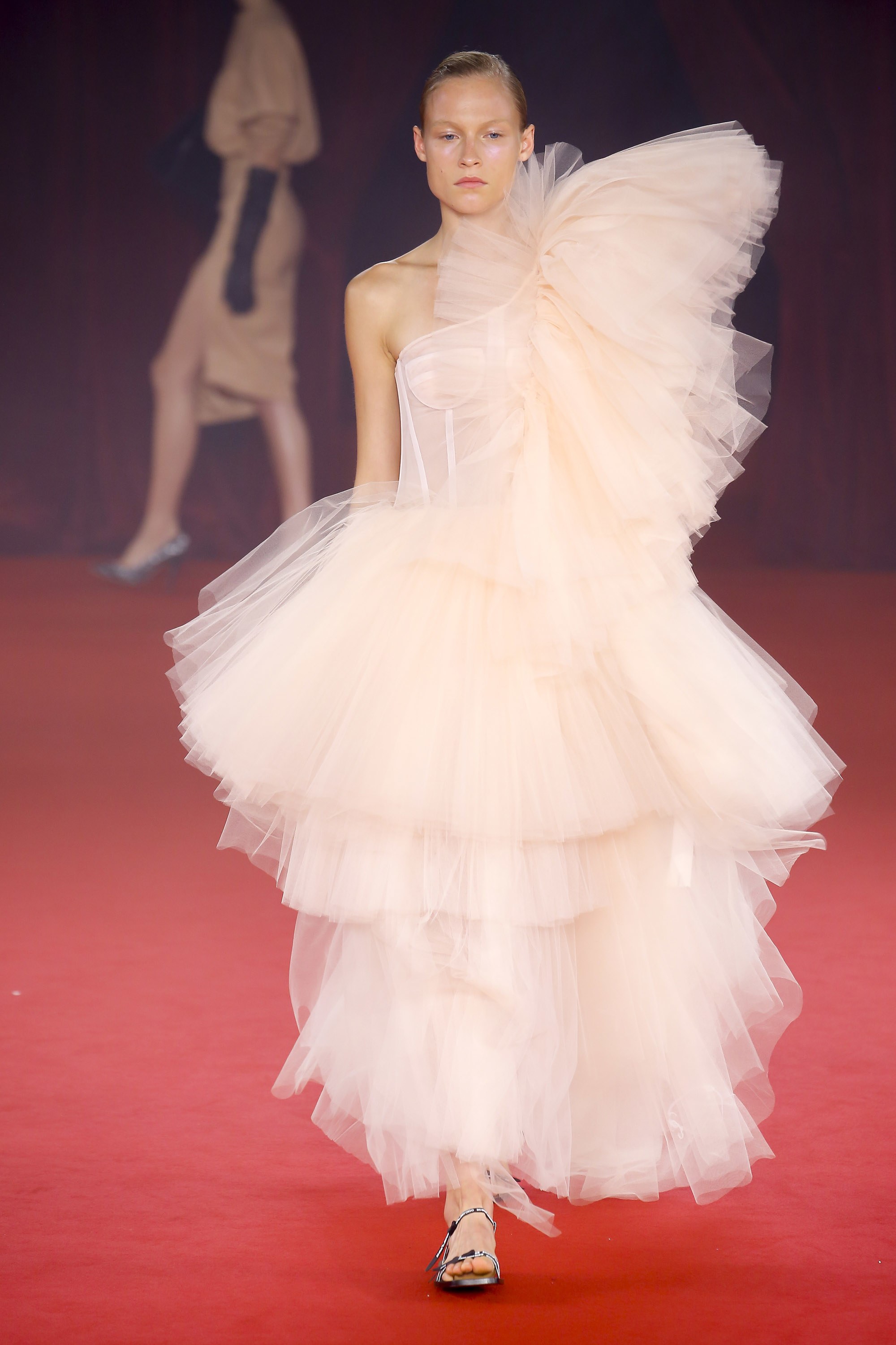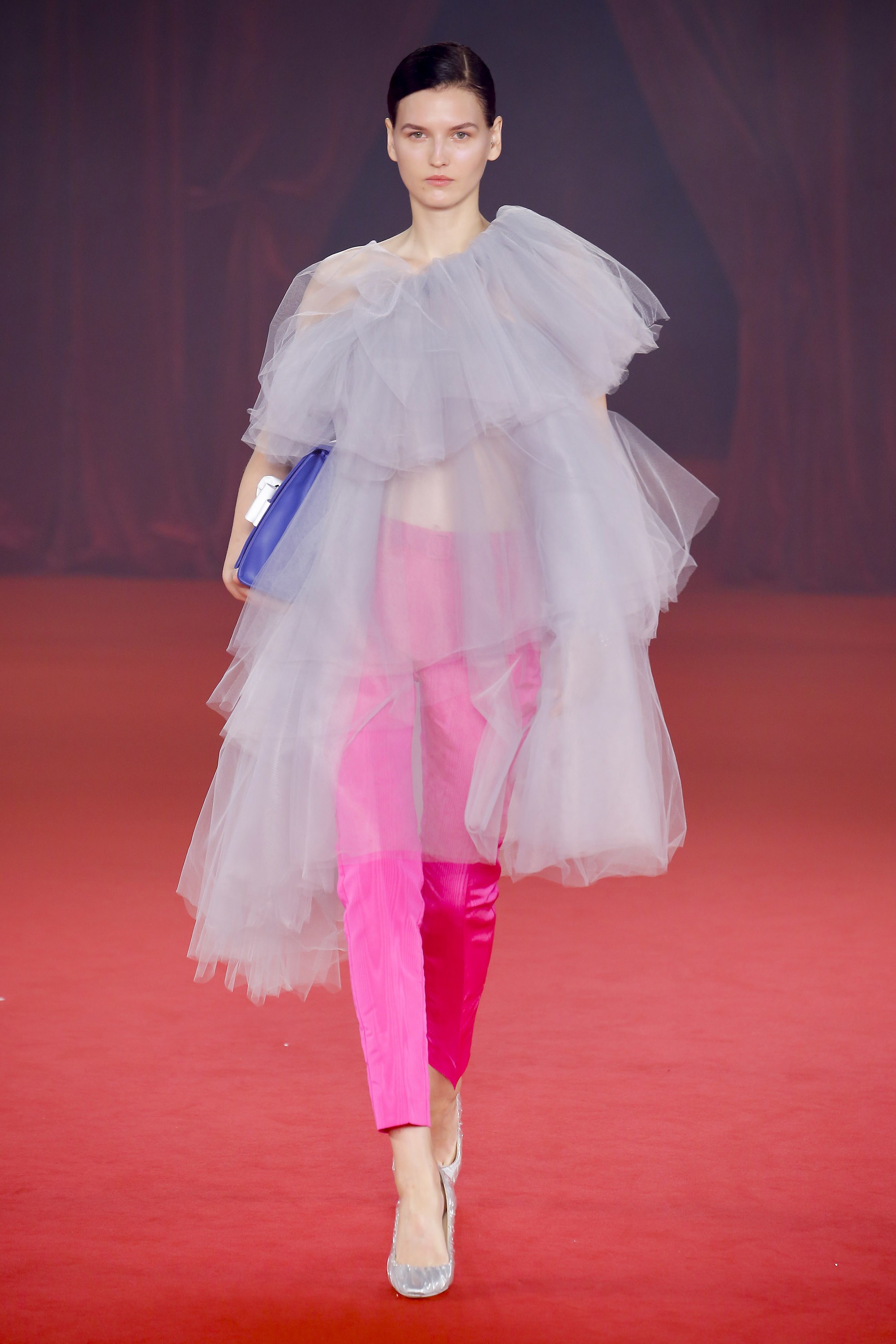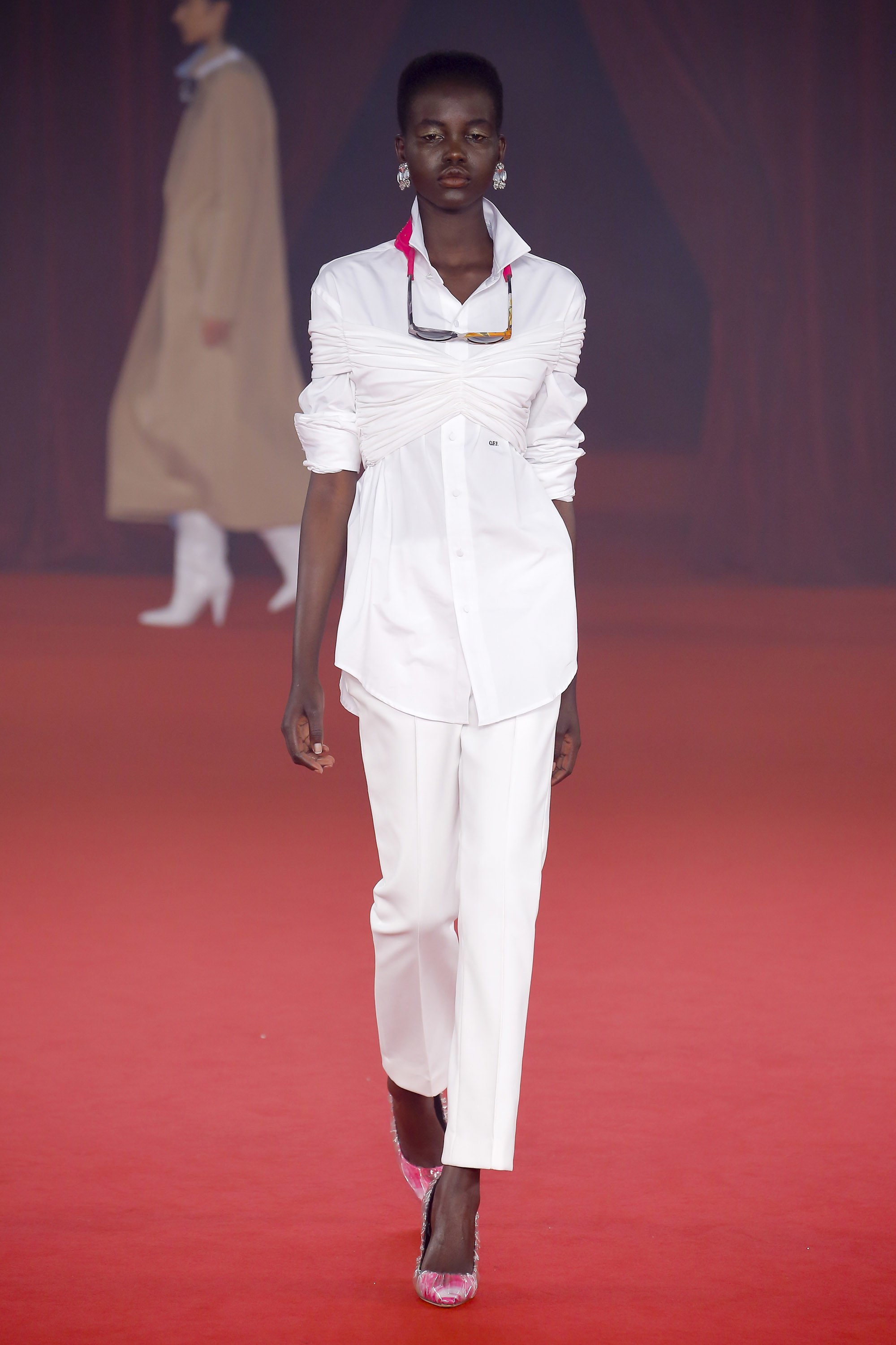 Abloh added ruffles and cropped outerwear pieces, which have been noticed throughout his previous collections.