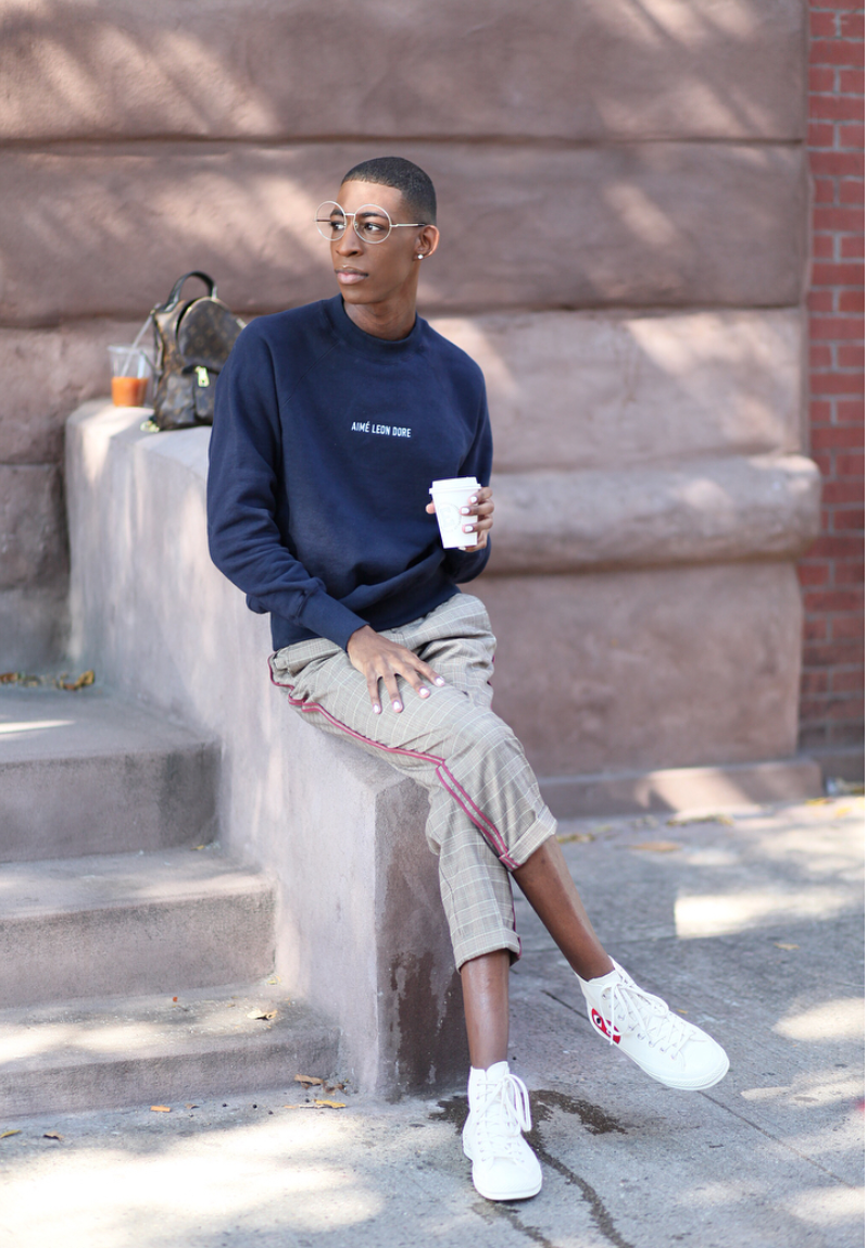 “I think my androgyny factors big into my style choice as well. I see so many black gay men, or gay men period who dress as Rihanna, or Kim K, but my spirit animals for style are Solange, Audrey Hepburn, and June Ambrose. They have filtered and unmatched taste in their style choices.”