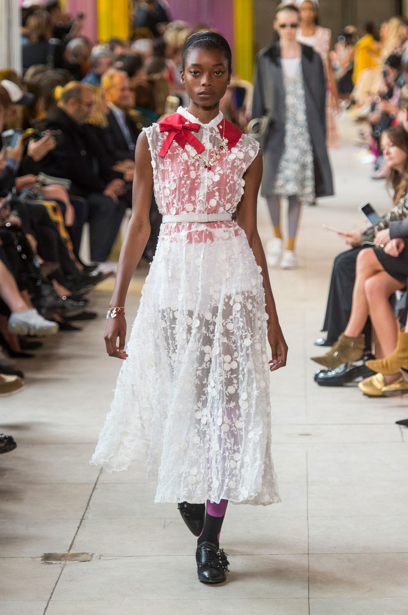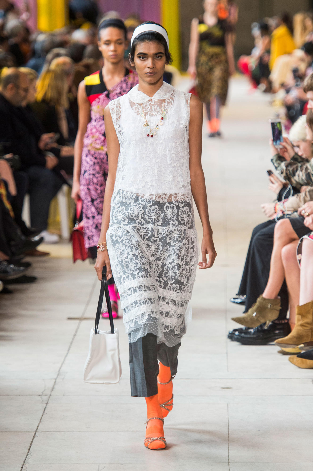 Dresses were layered over t-shirts, while one-shoulder sheer designs took shape on top of sweater vests and cropped trousers.