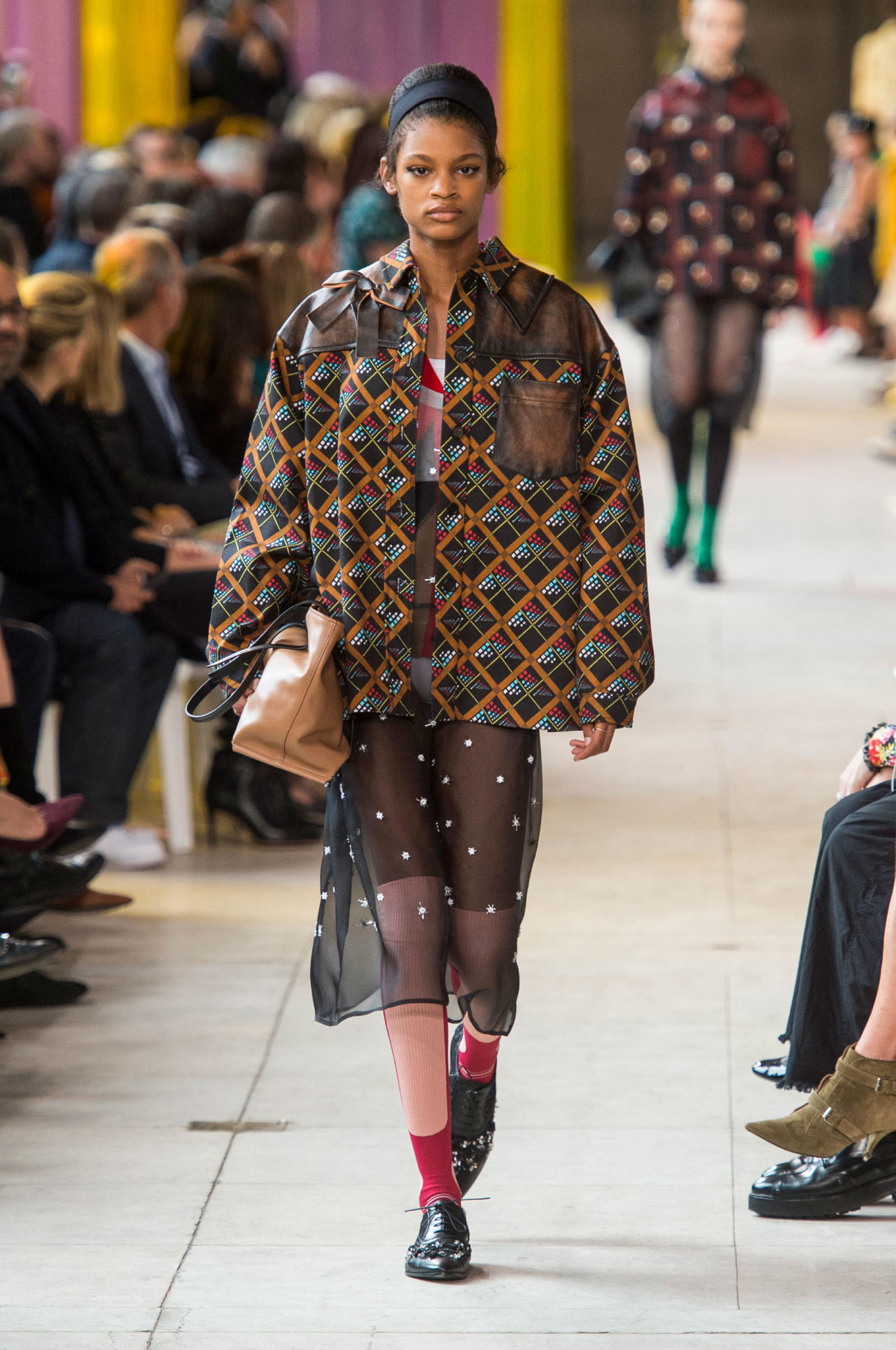 But not to fret, as the assortment did put some flesh on display. Thighs were bared from underneath a geometric print coat, while a sheer dress left more to the imagination than originally desired when placed under an oversized patterned jacket.