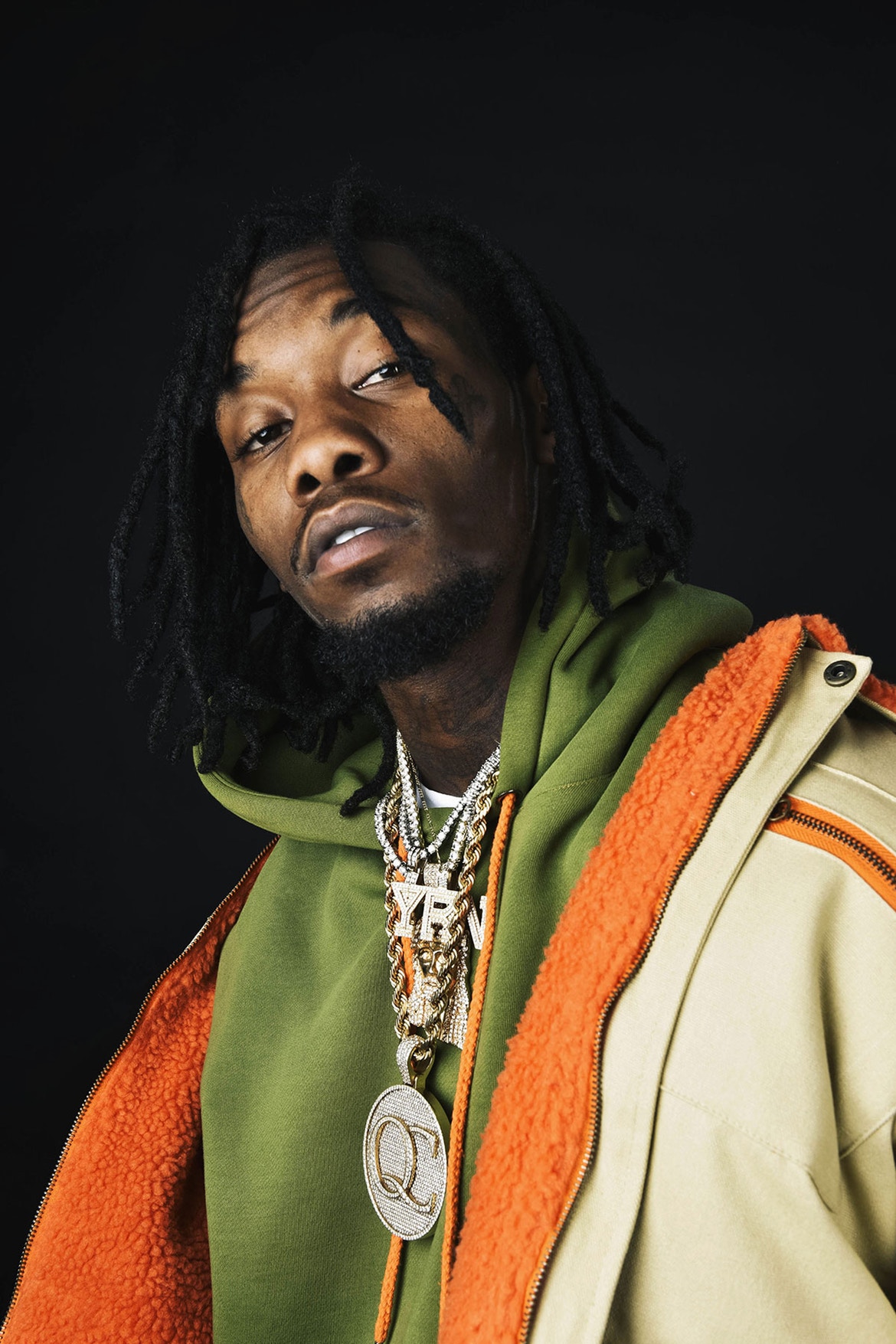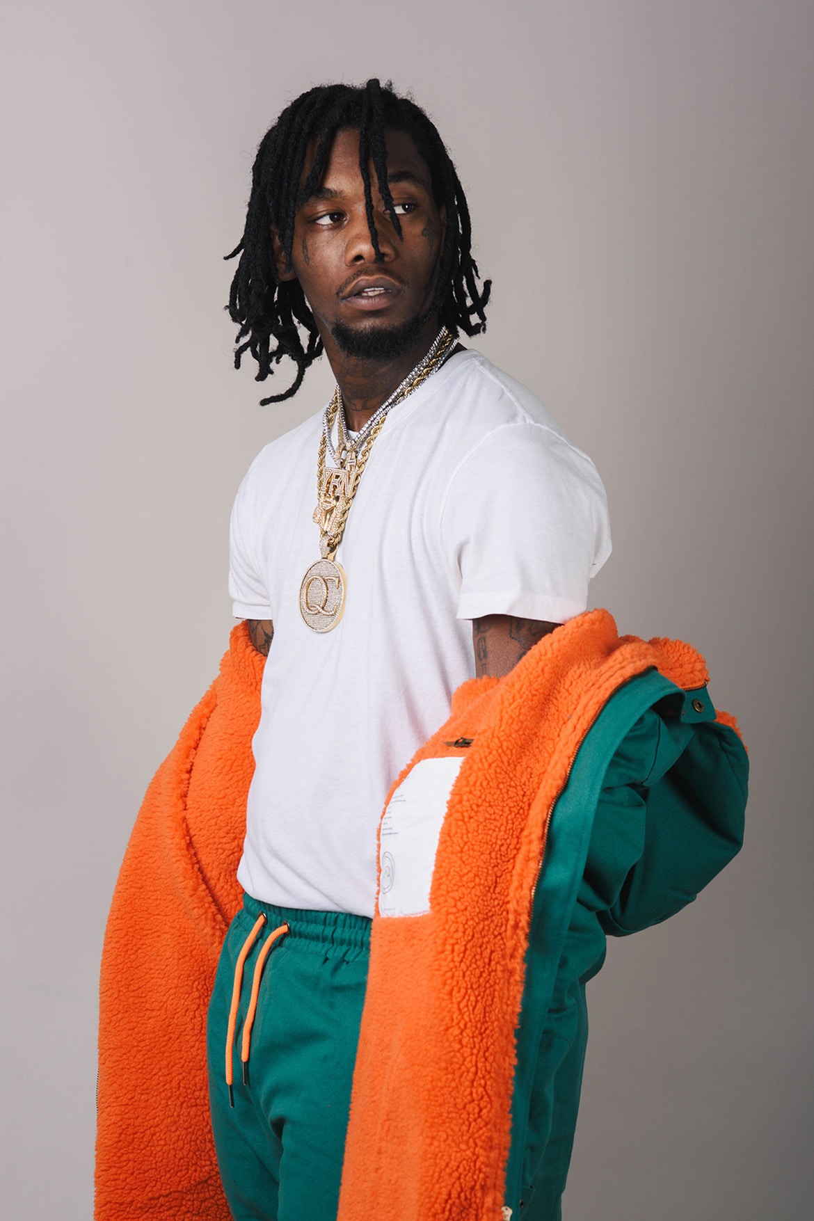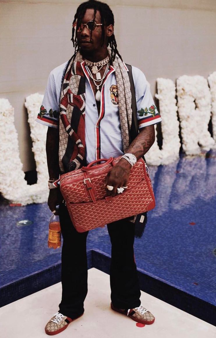 Besides having his own fashion label YRN (Young Rich Nation) with his crew Migos, Offset’s style is influenced by OG’s like British rapper, Slick Rick. He frequently accessorizes with icy neck chains, rings, and bracelets.