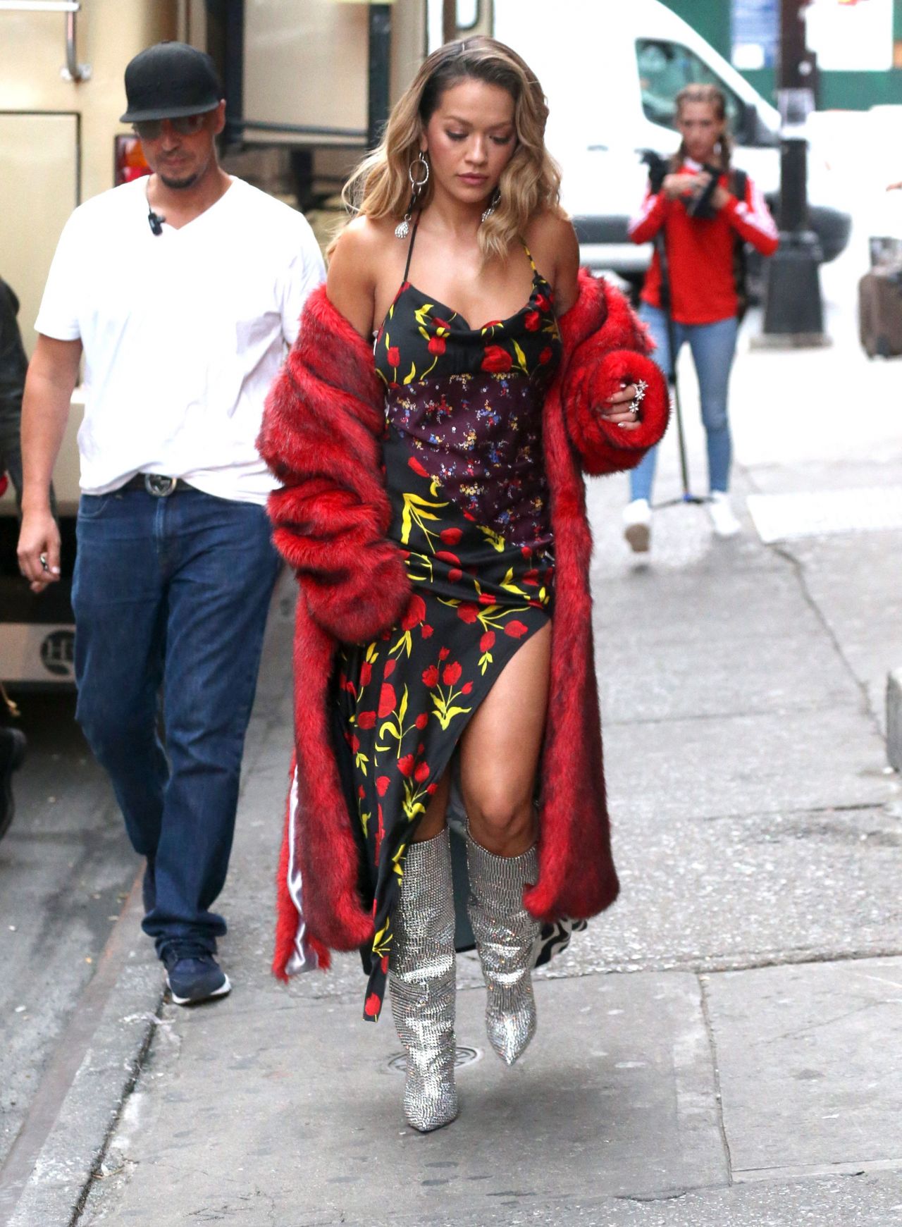 Rita Ora filmed her latest music video in a $1,615 Attico Patchwork Slip Dress and those coveted $10,000 Saint Laurent Niki Crystal Boots: