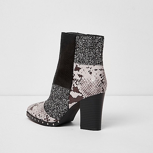 Retailing from $120 these beauties feature a faux leather fabric upper patchwork design, a snake print motif, glitter detail, stud embellishments & a block heel.