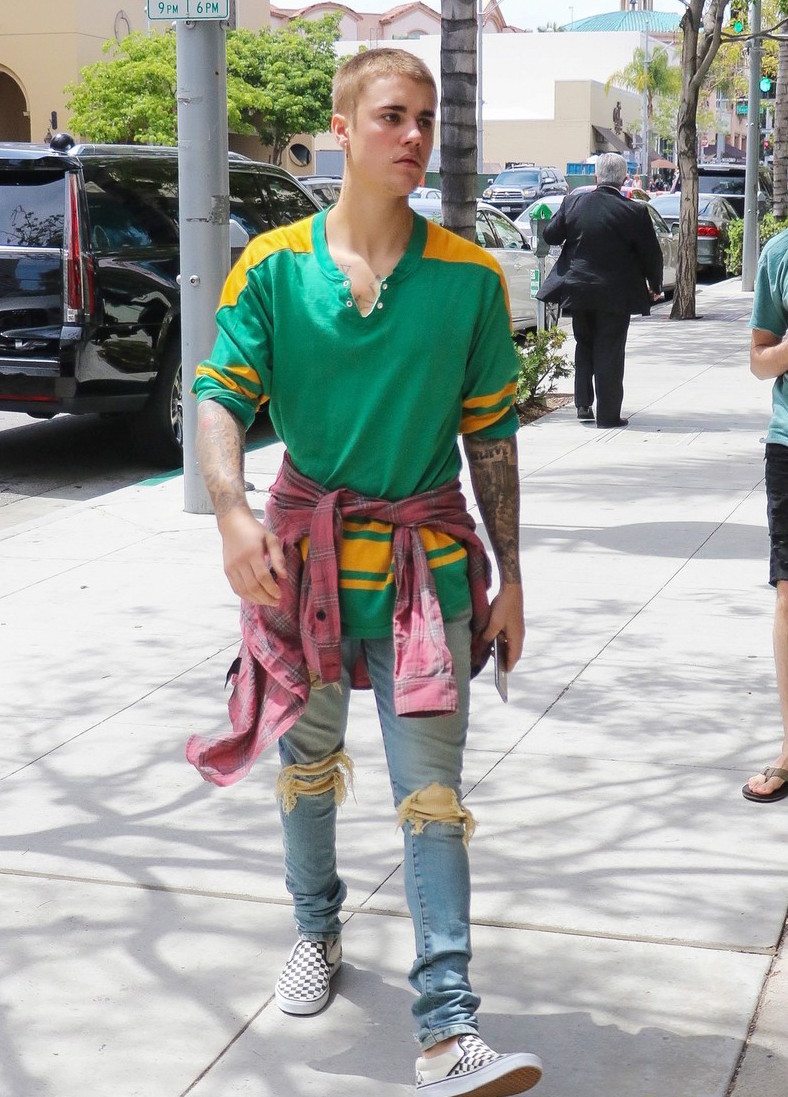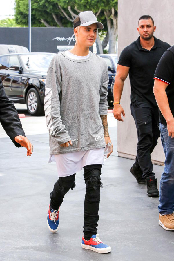 During his younger years, Justin mixed and match with colors and prints, but kept his appearance in the direction of skater boy street. Now, as his pockets and success grows, he has firmed up an idea of what fits him best.