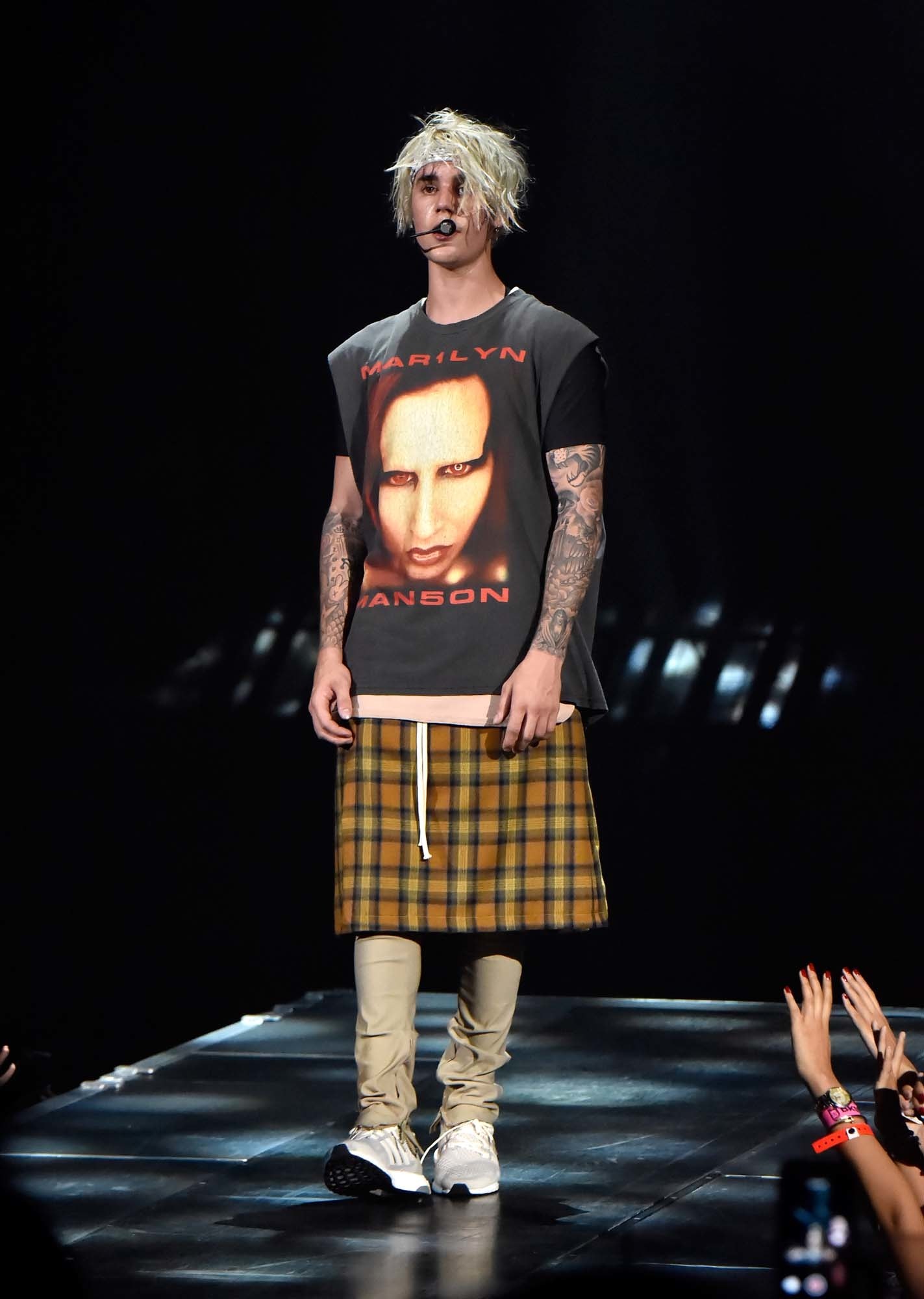 His normal day-to-day staple pieces are hoodies, specs, and bandanas, with the occasional unexpected piece (say a kilt) to keep people intrigued.