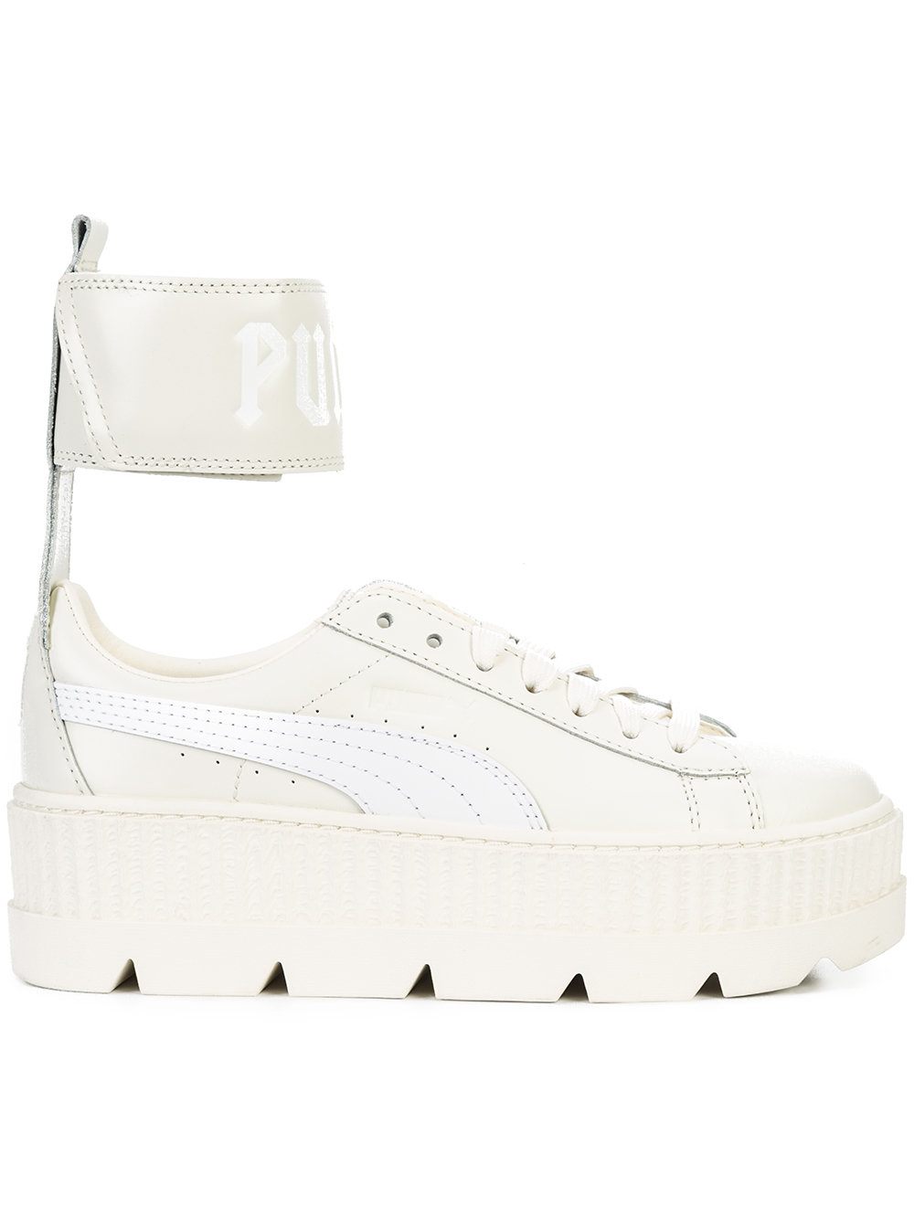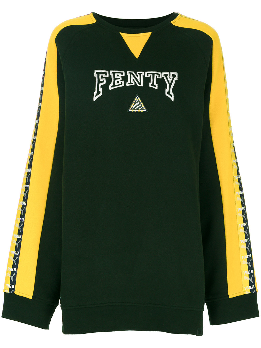 Rihanna posed for the ‘gram in a $196 FENTY x PUMA Logo Sweatshirt and $190 White Ankle Strap Sneakers: