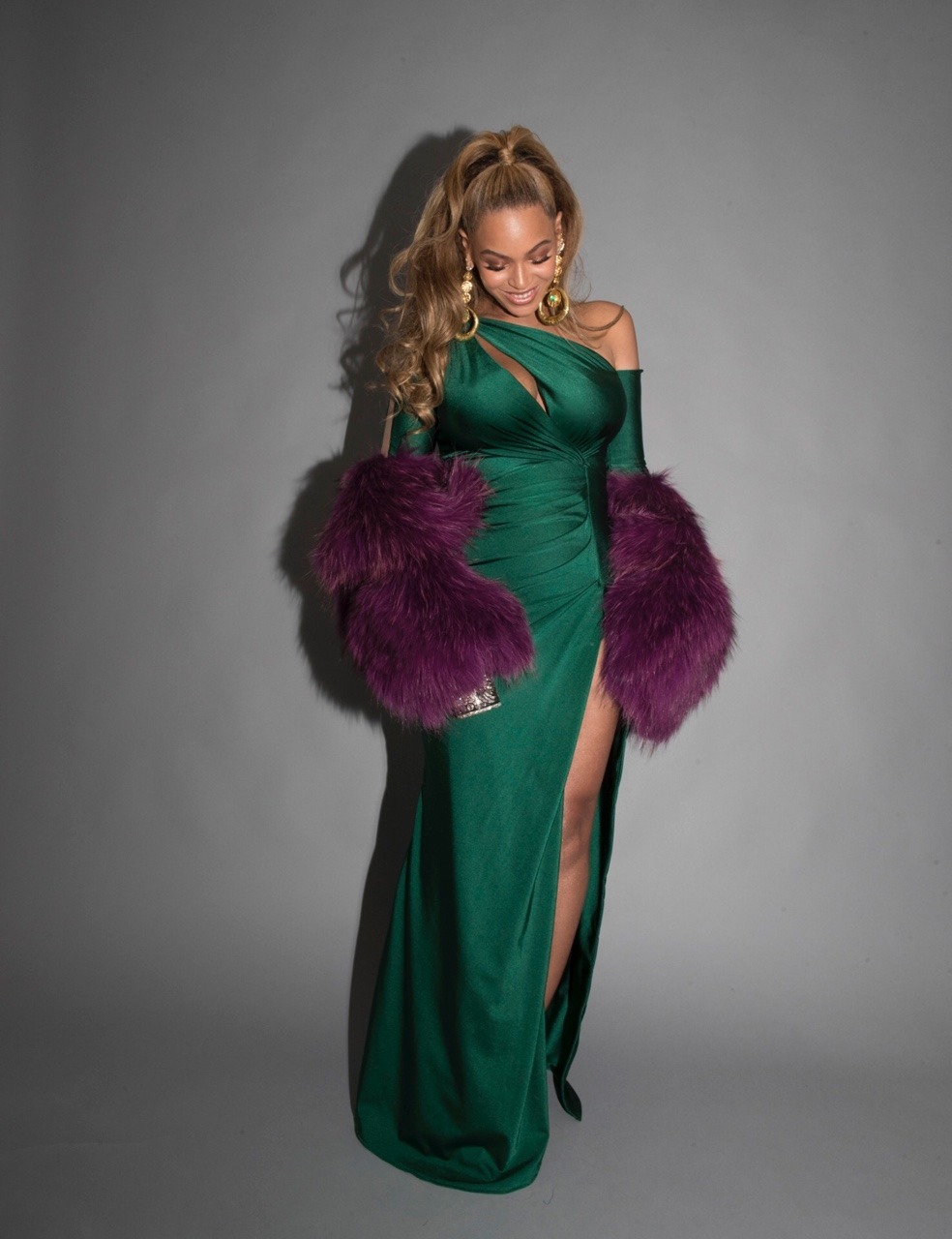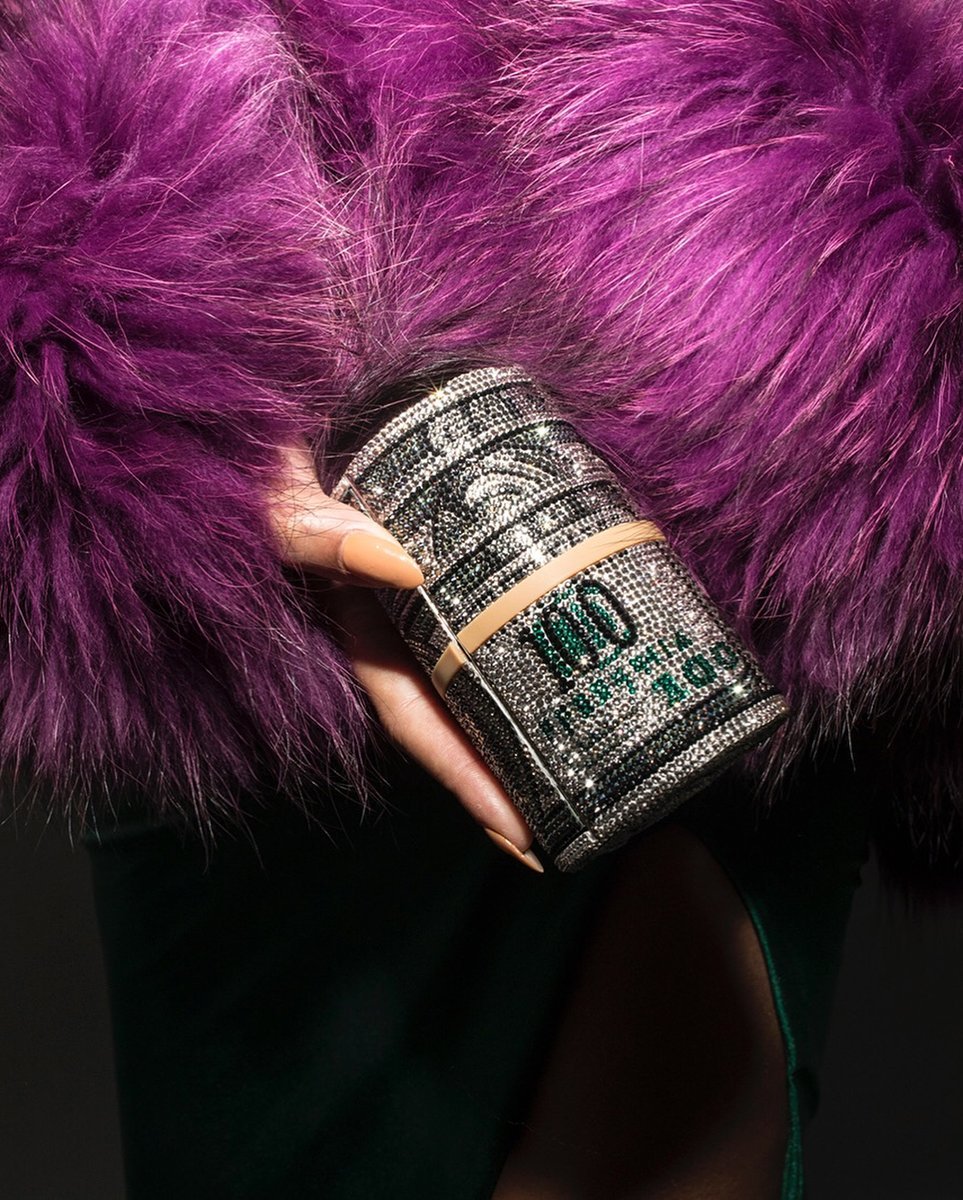 She further accessorized with a $5,000 Alexander Wang x Judith Leiber “Money” clutch and Lorraine Schwartz earrings created in collaboration with Beyonce’s stylist Zerina Akers.