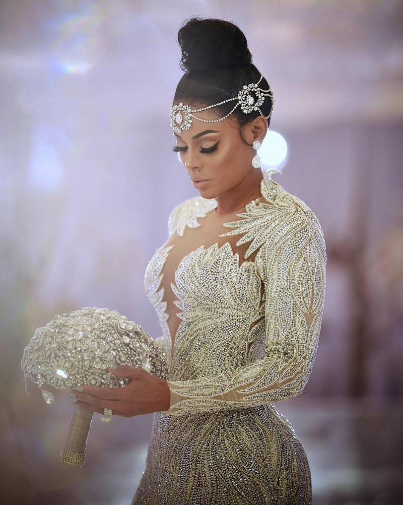 Sparkling gems decorated her hair, and filled her bouquet. Gorgeous! Keyshia’s glam dress consisted of a 25 foot ostrich feather train, the same length that Princess Diana had. Emulating the Princess’ big wedding style, yet Mrs. Davis went for elegant as oppose to traditional. The jaw-dropping dress was all Swarovski crystals and had real ostrich feathers.