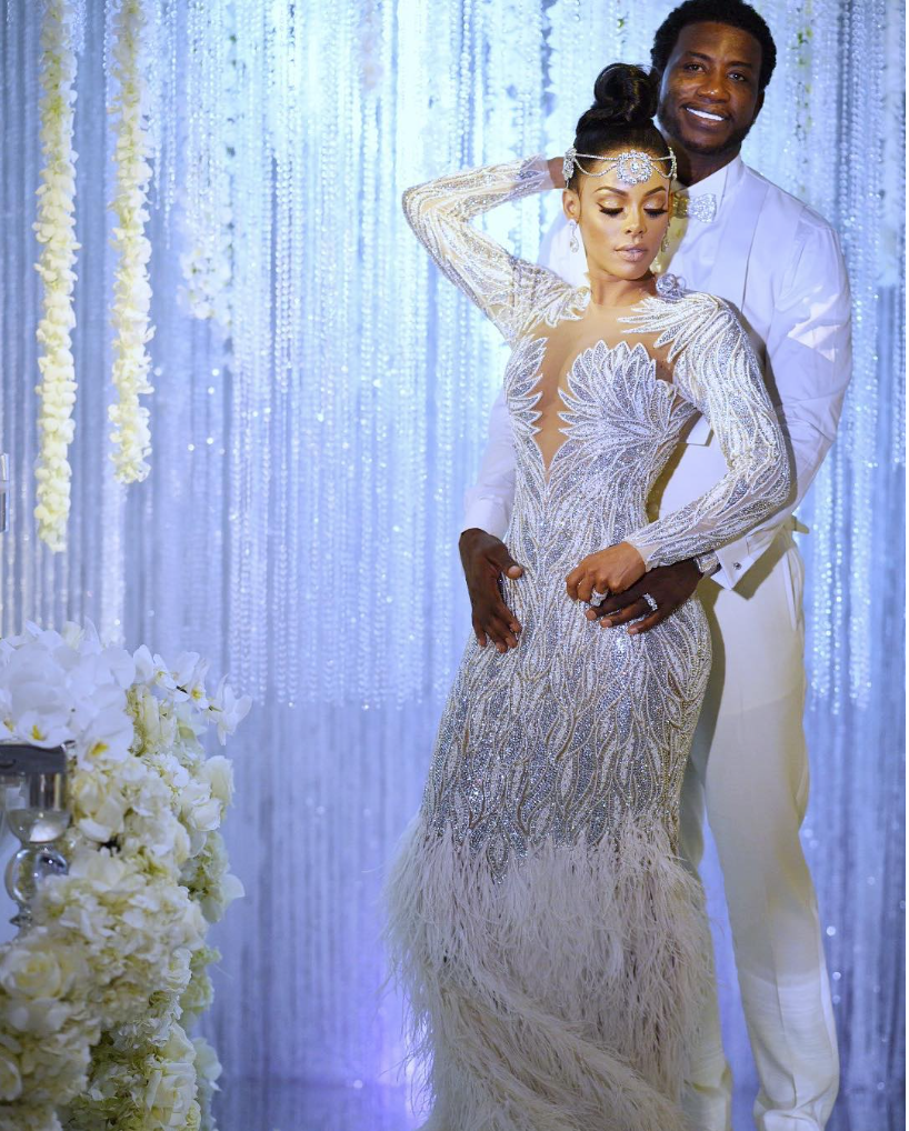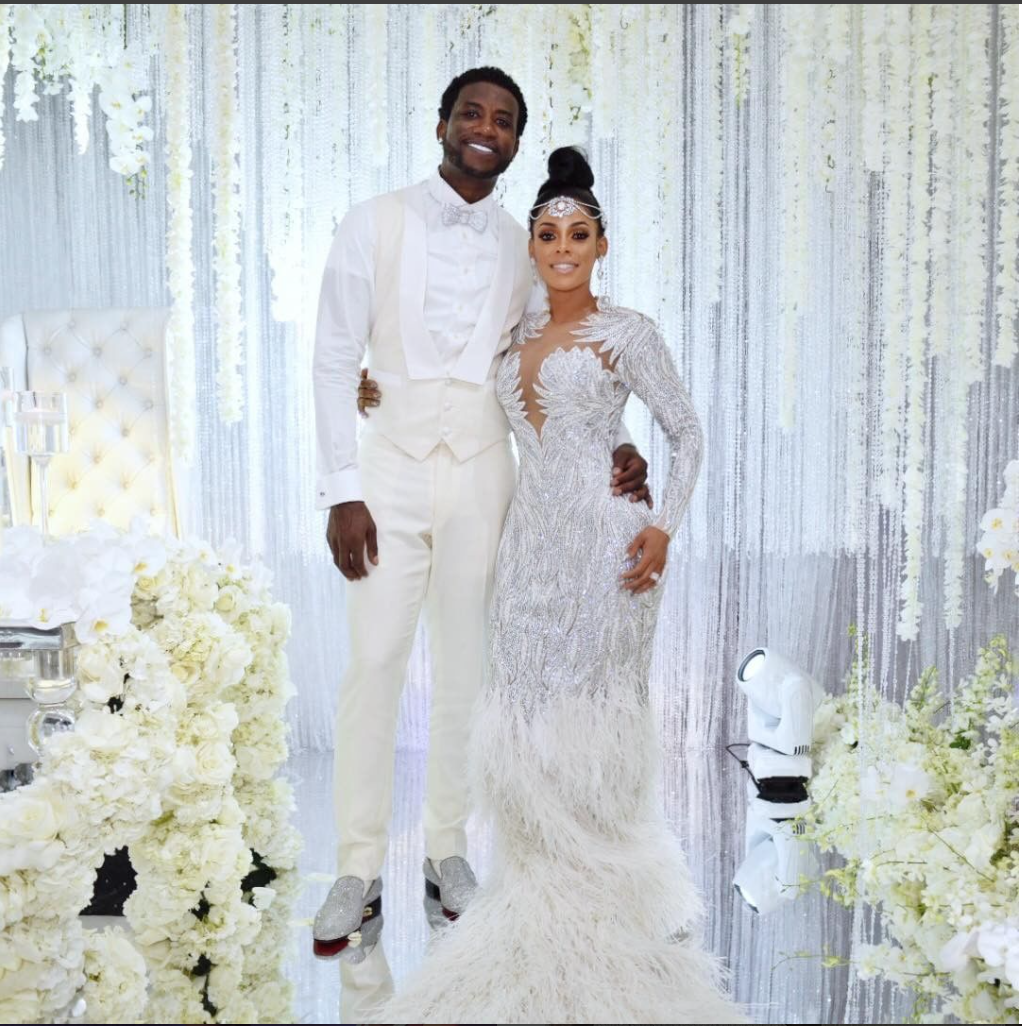 Keyshia Kaoir and Gucci Mane got married in a blitz of diamonds and bling, with an all white ceremony at the Four Seasons in Miami. For the occasion, Keyshia Kaoir wore a $40,000 custom Charbel Zoe gown, while Gucci smiled bright in Hideoki Bespoke.