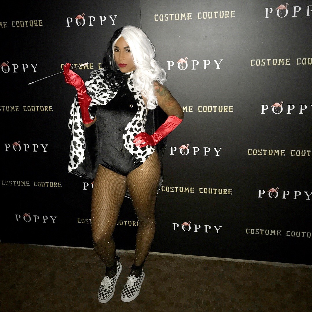 She writes, “I attended Kelly Rowland and Lenny Santiago’s Halloween party at Poppy last night, dressed as Cruella de Vil.”