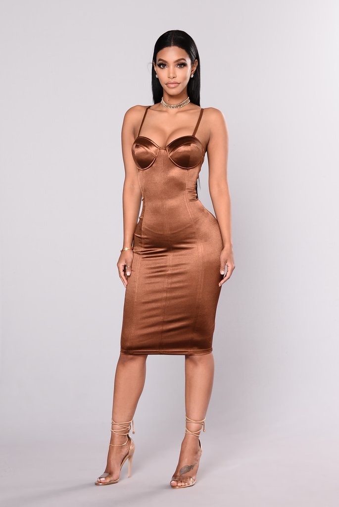 Ladies love Fashion Nova! To whit, Teyana Taylor and Christina Milian who were both spied in the brand’s $33 Stupid in Love chocolate satin corset dress: