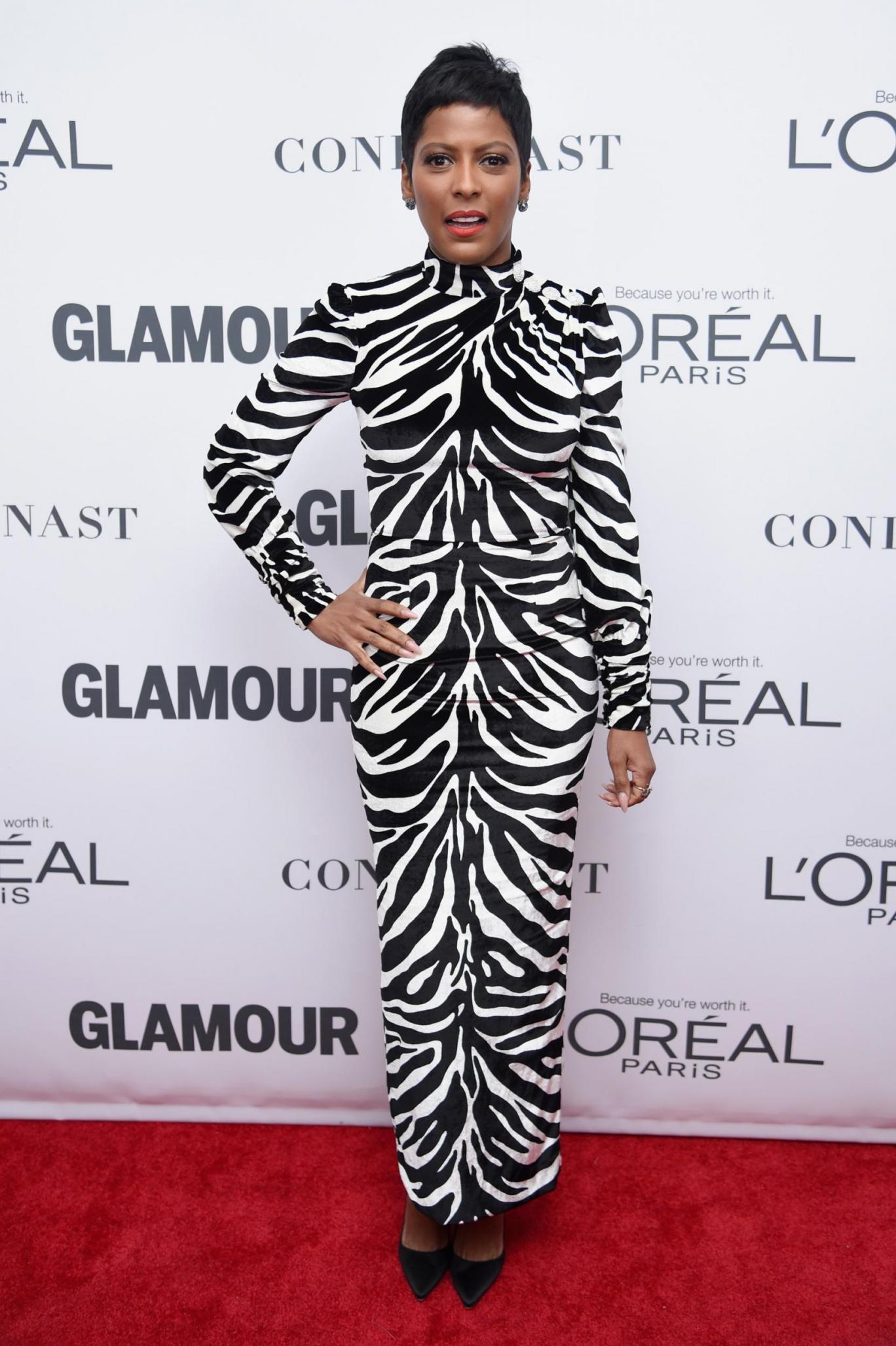 Tamron Hall rocked a zebra print ensemble from Alessandra Rich’s FW17 collection.