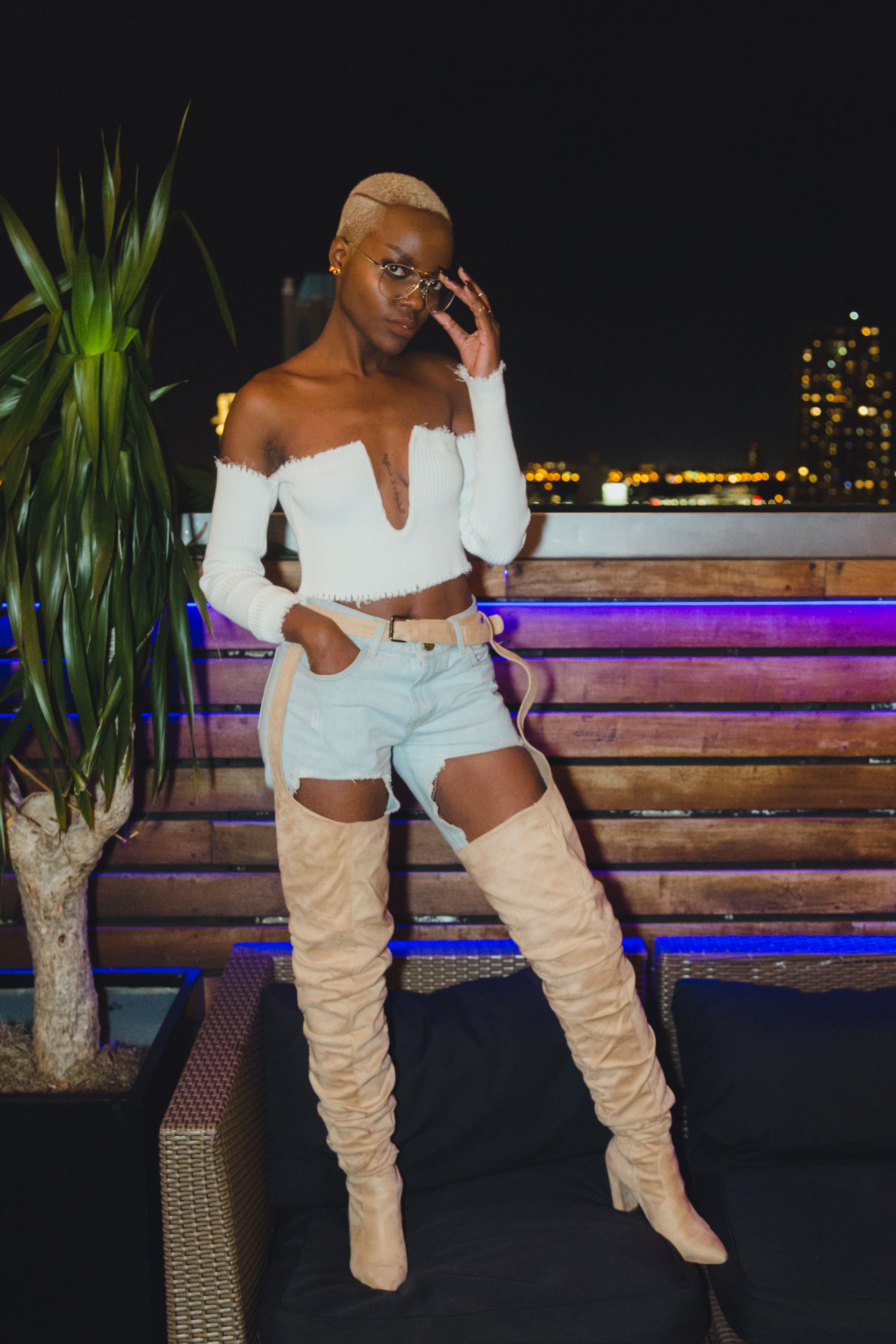 “And my inspiration….I was like, listen….I just wanted to wear what I want to wear and express how I’m feeling so today I’m feeling good, I’m feeling sexy, I’m feeling fun, so I just put something random together to kind of express how I was feeling. The shoes I would say were inspired by Rihanna I did see her wear a similar pair that connected to a belt. I identified myself with it so why not rock it too?!”