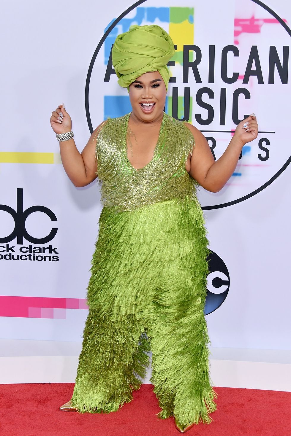 Patrick Starr went bold in a lime green fringe gown and matching headwrap. What’s not to love?