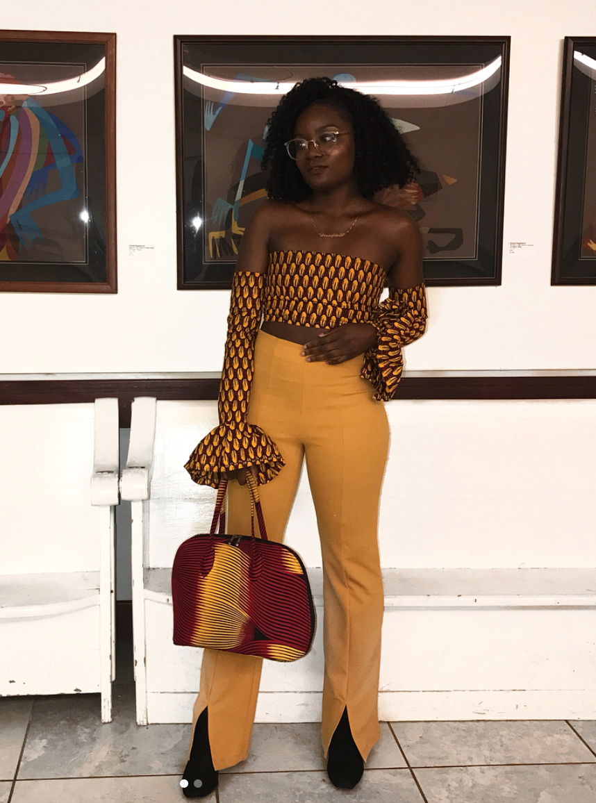 I mainly end up wearing red, blue and yellow. I enjoy experimenting with color and my style.”