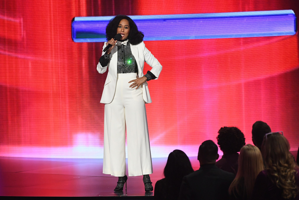 Tracee channeled her mom and icon Diana Ross in the actual embellished shirt she wore during a timeless performance with Michael Jackson for her sixth getup of the evening. The white suit was so fresh and so clean!