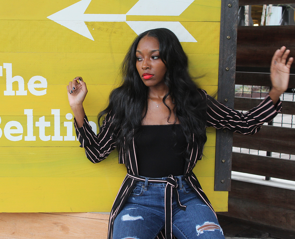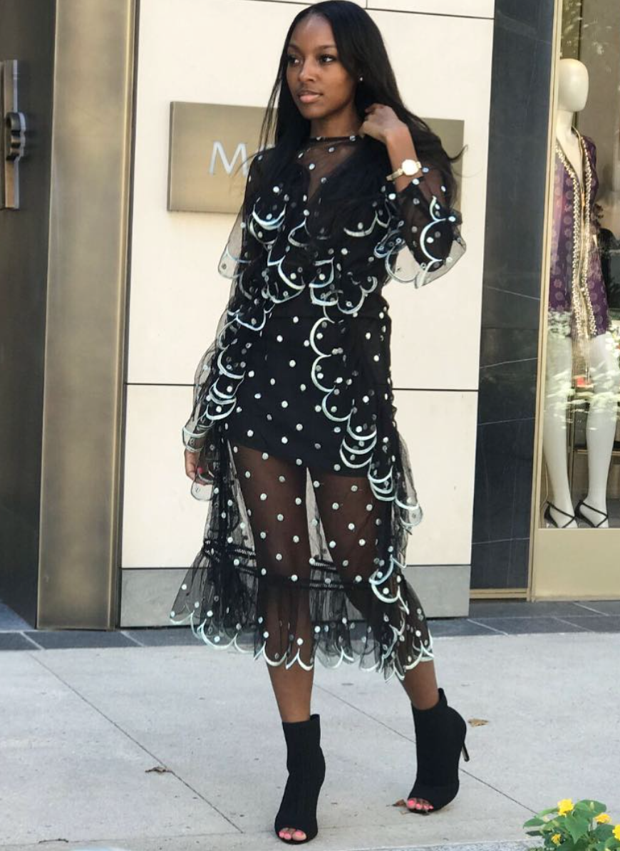 “I love pops of colors and dainty jewelry. I love trying new things when it comes to how I dress and I rarely dress for the occasion. I dress to reflect my mood. There’s something about wearing all black with pops of red on your nails and lips that excites me.”