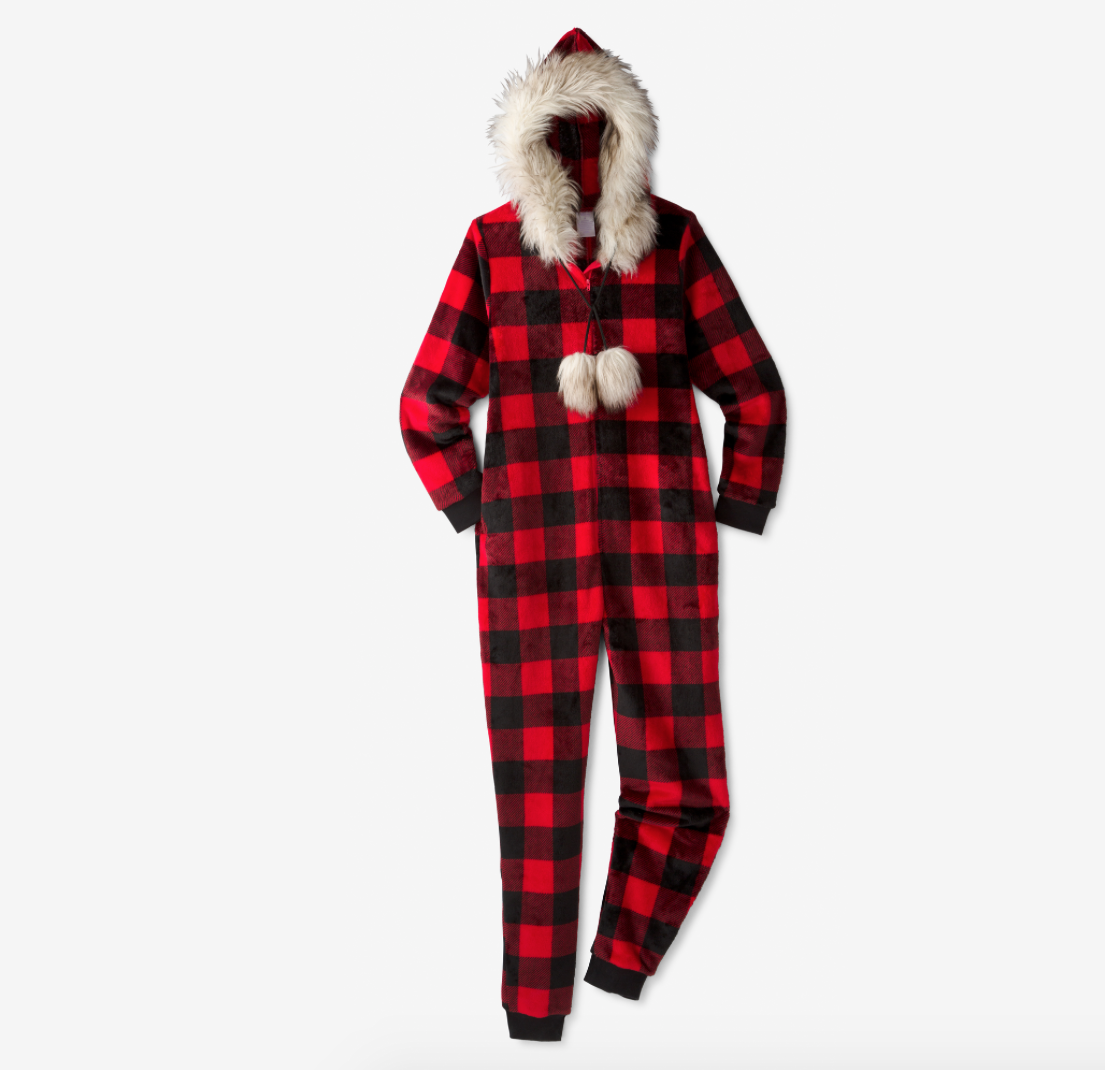 Not plan on doing much moving around after the holiday feast? Veg out and watch your fave flix in this festive onesie, which come with faux fur pom poms.