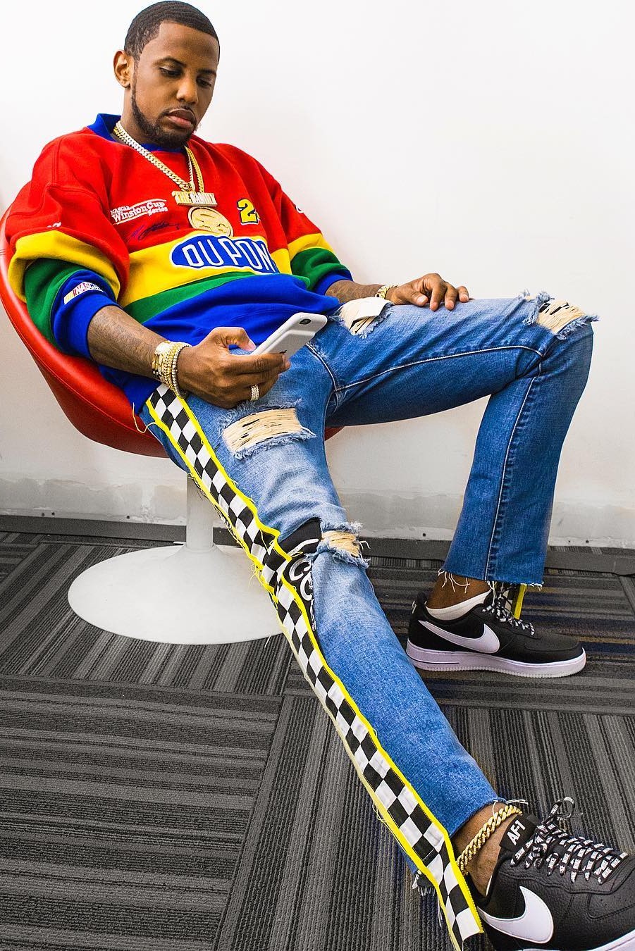 These days, the silhouette of Fab’s looks is more slim cut and fitted, but the swag hasn’t died. Bomber jackets in vibrant hues festooned with patches seem to be the weapon of choice in his sartorial arsenal. And on stage, the looks keep coming. Rocking designers like Gucci, Off-White, and Rhude at sold out shows to killing it in all white shows the versatility in his style.