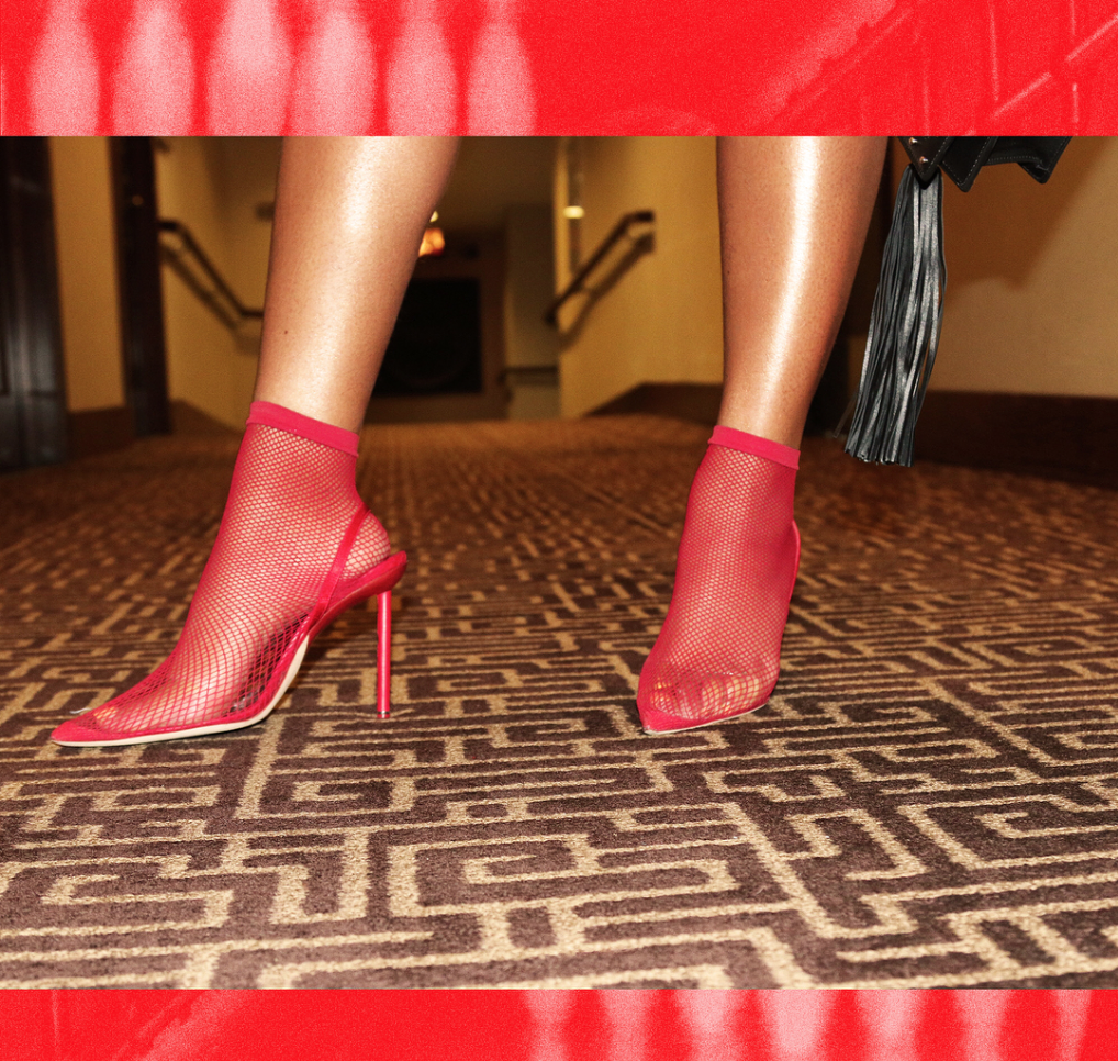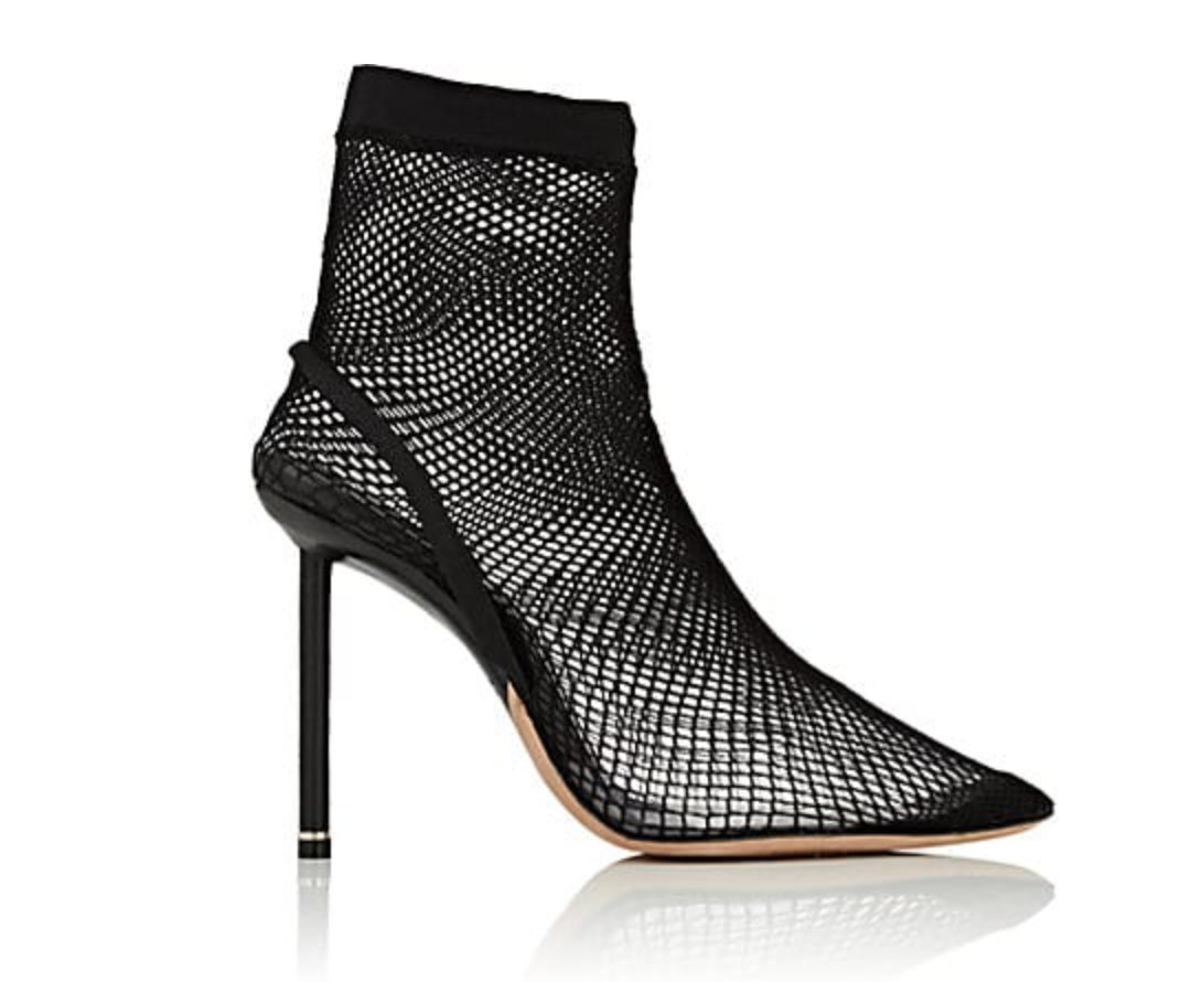 The bombshell accessorized her look with $995 Alexander Wang fishnet booties and Miu Miu shades.