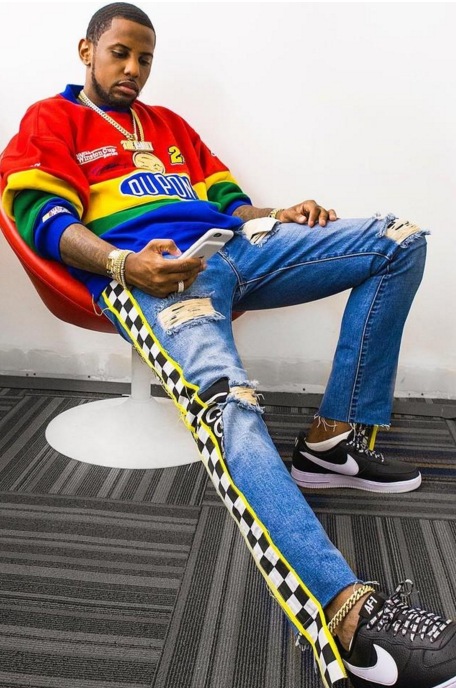 What makes Fabolous stand out from the other Fashion Bombers is his ability to effortlessly turn sportwear attire into a clean and dapper fit. Fab’s closet consists of unique and rare pieces like the vintage DuPont x Jeff Gordon rainbow sweater, and more recently, the FW16 Off-White Lamb Shearling Jacket he wore to a Knicks vs. Nets game.