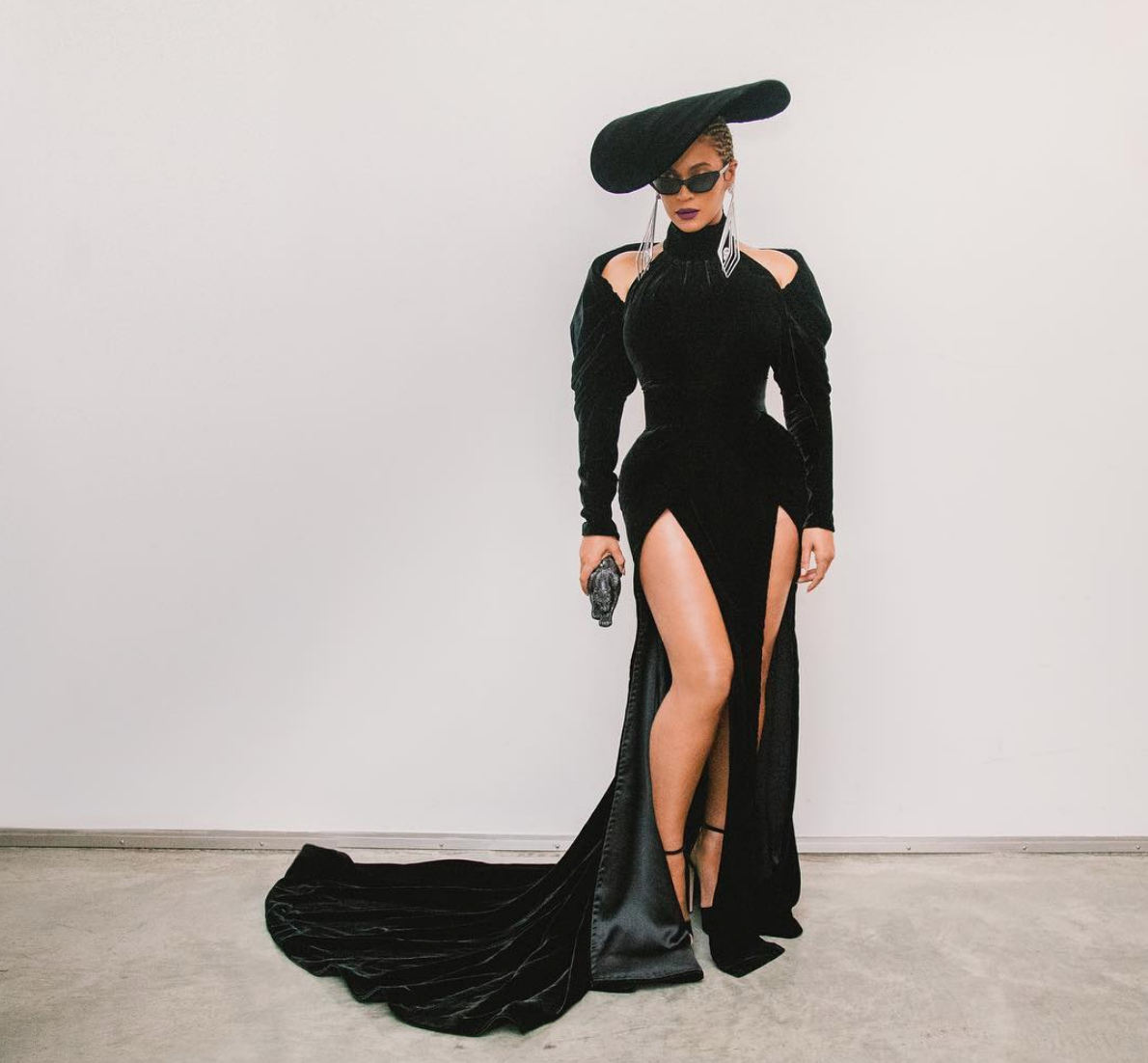 We can always count on Queen Bey to bring the heat! She didn’t walk the red carpet, but she made an appearance and broke the internet in a custom double thigh split gown by Nicholas Jebran. The curve-hugging dress emphasized Bey’s bomb hourglass figure. Accessorizing with a statement hat, diamond earrings and bold Alain Mikli shades it added every bit of chic to her look. To top it off, the mom of 3 rocked sleek straight back cornrows. This is how you do the Grammy’s! Hot!