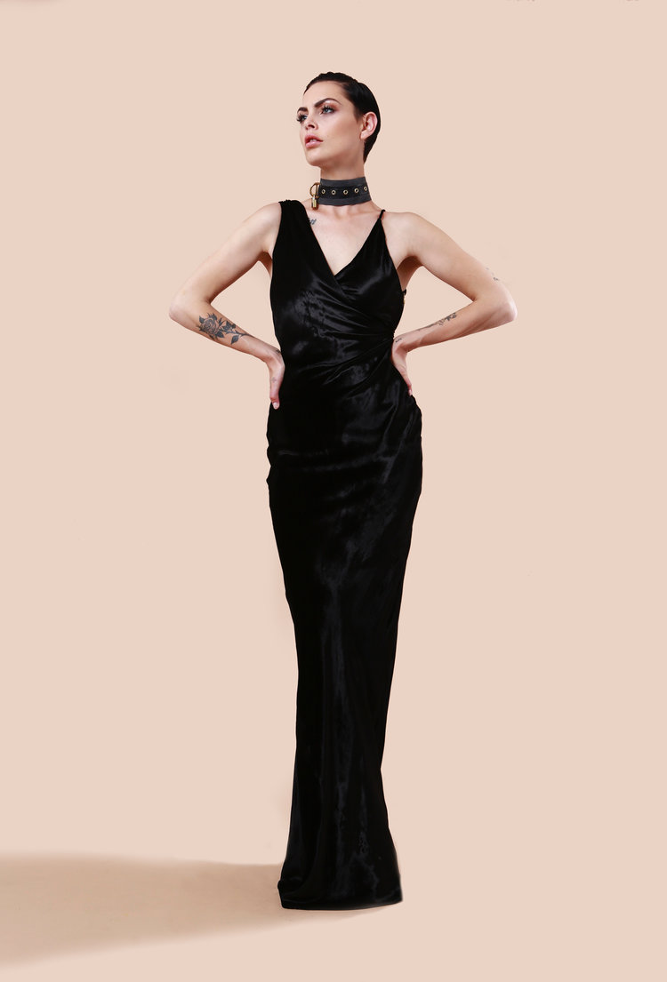 Self taught designer Bishme Cromartie offers an artful take on gowns: think gathered sleeves and elongated hems.