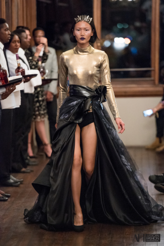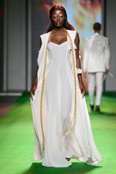 South African fashion designer David Tlale’s work has been featured at Capetown Fashion Week, New York Fashion Week, and Paris Fashion Week. His collection incorporates simple tones and metallics: think white and black with punches of silver and gold.