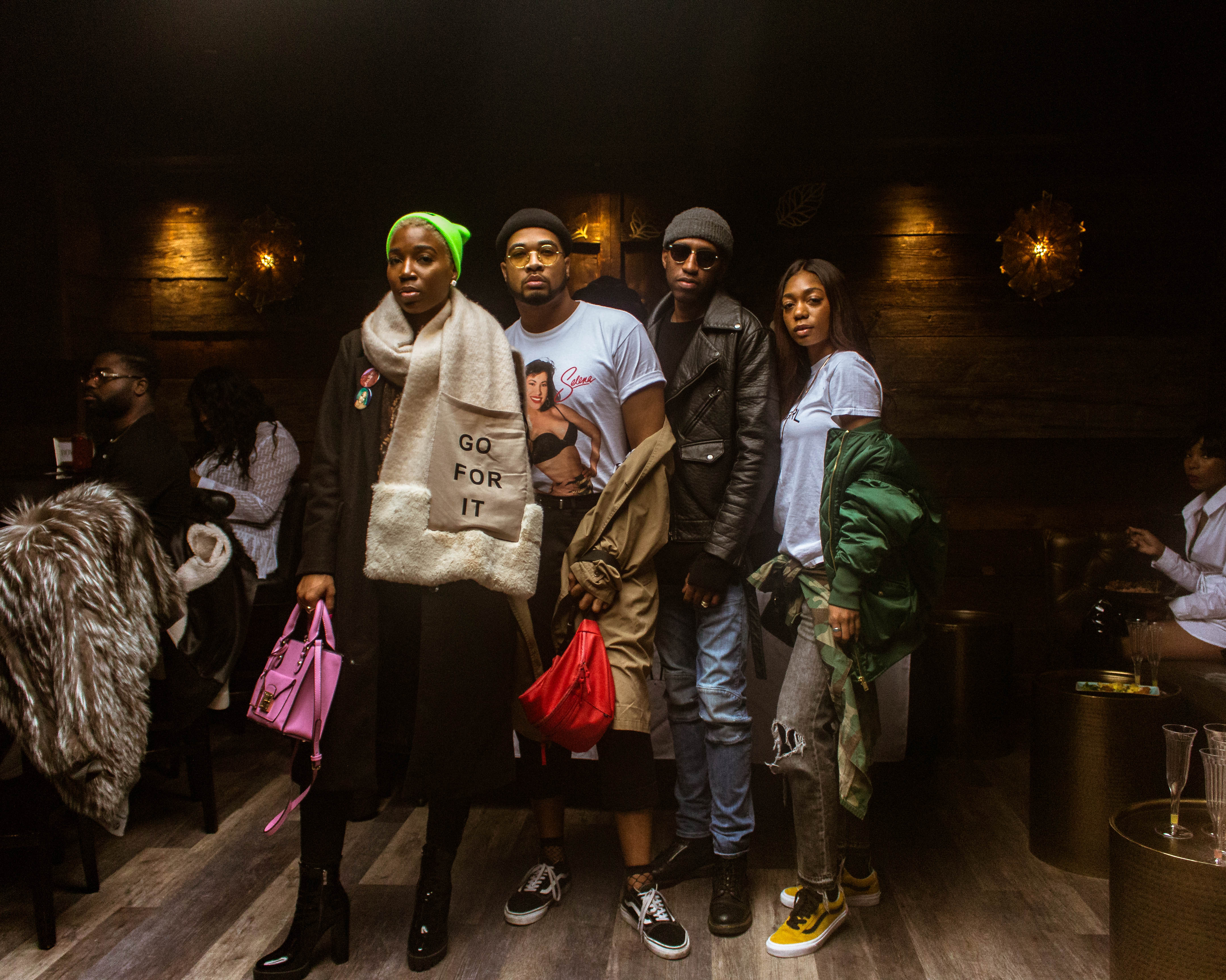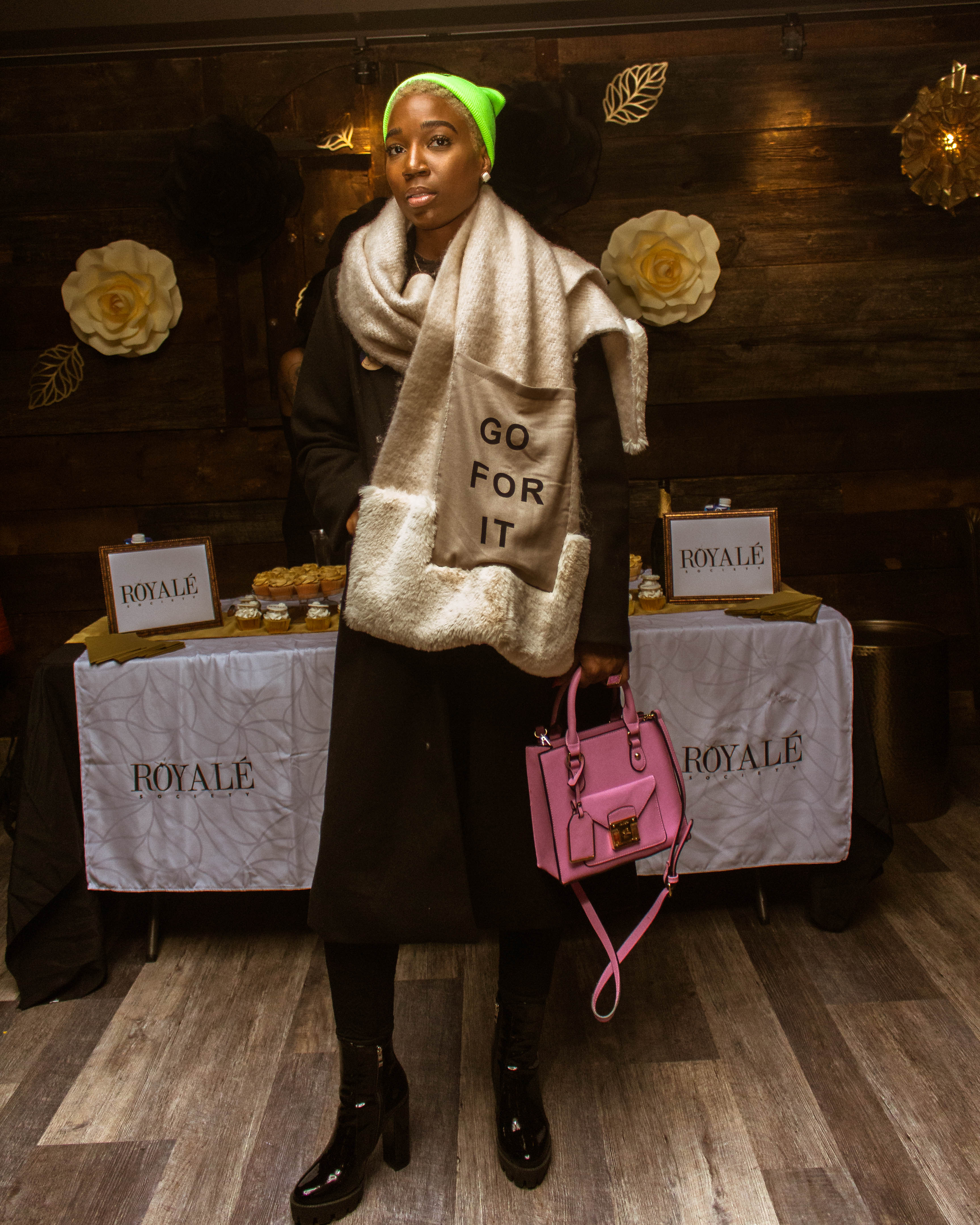 The outerwear was on fire at the soirée! Bombshell, @fetchxlysh was clad in a trench coat and accessorized with a statement ‘Go For It’ scarf and pink bag.