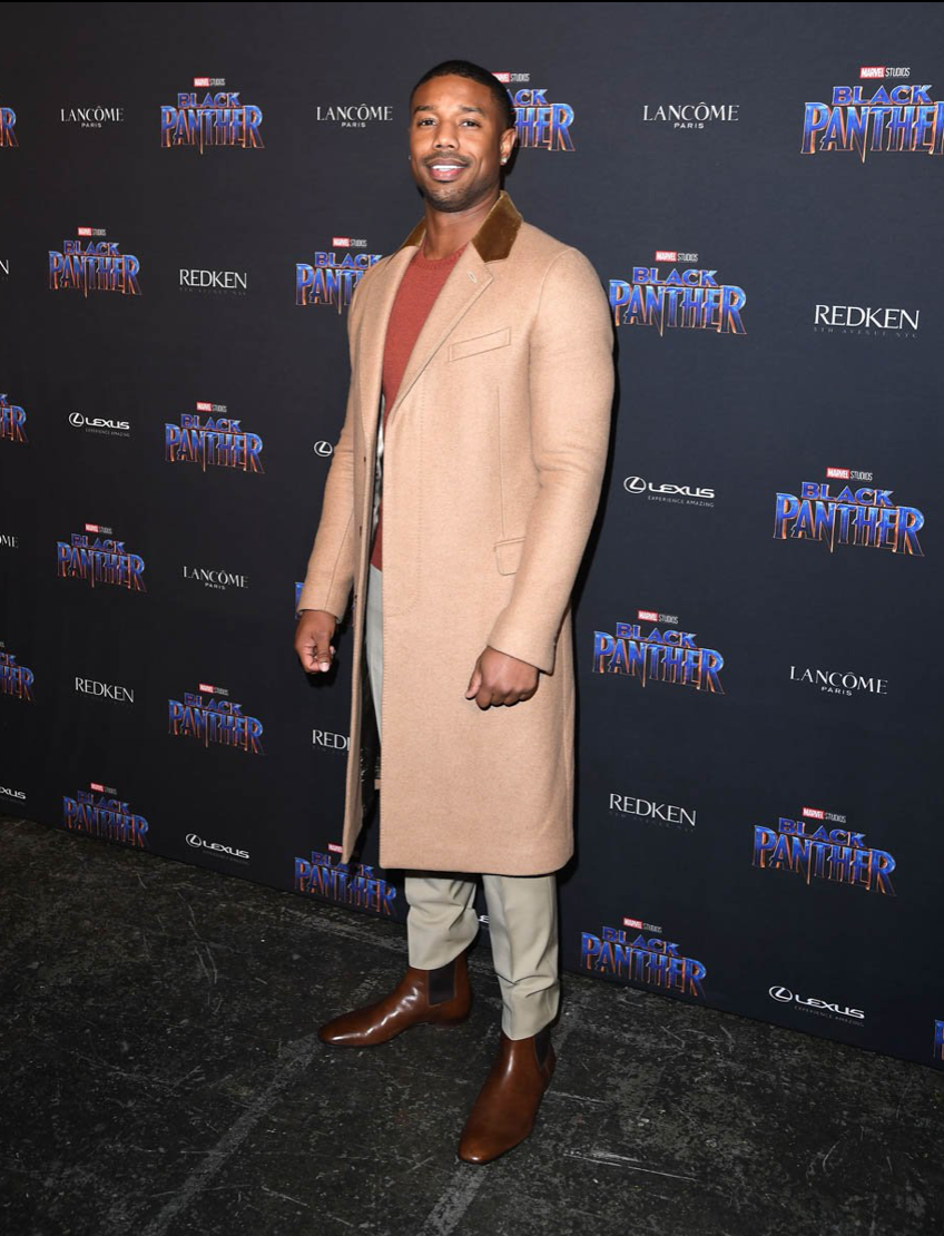 Michael B. Jordan was dapper in neutrals at the Black Panther x New York Fashion Week event. The look by Prada was perfectly tailored which topped it off. Michael’s signature coats have been turning heads all week long while he’s out and about doing press. We must say, they suit him well!